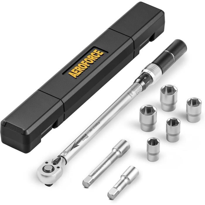 CARTMAN La clé dynamométrique à cliquet de 1,27 cm est équipée d'une tête d'engrenage à cliquet en alliage de chrome-vanadium, qui est à la fois robuste et résistante. Clé dynamométrique dynamométrique 1/2, 40-200 Nm KS TOOLS 1 clé dynamométrique pour vélo 5-25 Nm, clé dynamométrique à clic 1/4... Remarque : déverrouiller avant d'ajuster la valeur de couple, verrouiller après avoir stabilisé le couple de travail ; après avoir terminé, relâchez l'anneau de verrouillage et ajustez à la valeur minimale pour la prochaine utilisation. A passé des tests effectués par des institutions réputées, ainsi que des inspections d'usine et des examens annuels, obtenant la certification GS. Il dispose d'une poignée moletée orange et d'un anneau de verrouillage moleté noir et d'un cordier, offrant un design élégant et minimaliste. Lorsque la valeur de couple prédéfinie est atteinte, la clé émet un clic sonore, vous signalant de cesser d'appliquer la force pour éviter un couple excessif et des dommages potentiels à vos articles, assurant un fonctionnement sûr et fiable. 【Précision】 : livré pré-calibré à +/- 3 % pour une utilisation marine, prêt à l'emploi. La clé comprend une poignée ergonomique antidérapante en aluminium et bénéficie d'un traitement de surface de galvanoplastie avec un processus d'oxydation supplémentaire, assurant une expérience d'utilisation lisse et stable. 【Spécifications】 : la clé dynamométrique 1/2 a une portée de 7,5 à 75,6 m., LBS / 33,75 à 337,5 N., M. Avec son embout carré à enfoncer et son verrouillage à goupille, cet outil permet un serrage contrôlé dans les deux sens de rotation. La poignée bimatière antidérapante et le certificat de calibrage inclus complètent les caractéristiques de cette clé dynamométrique robuste et fiable Clé Dynamométrique Pour Garage Clé De Tension YOSOO - Clé Dynamométrique à Clic D'entranement - Acier Réarmement Clé Dynamométrique 【Sécurité】: lors de l'utilisation de la clé, un léger bruit de clic sera émis lorsque la valeur de couple définie est atteinte, vous signalant d'arrêter d'appliquer la force pour éviter un couple excessif et des dommages potentiels à vos articles.