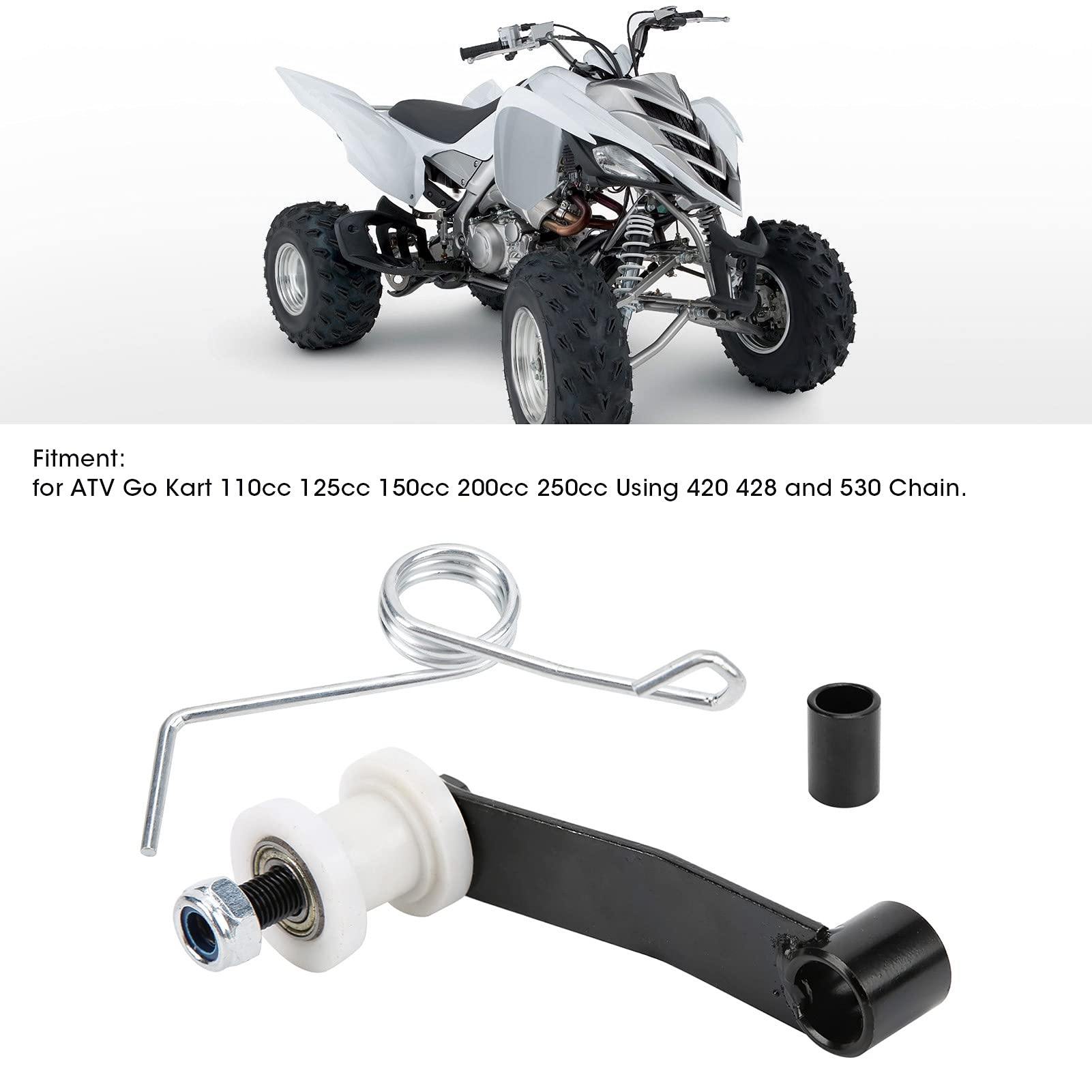 Spécification: Type d'article: Chaîne Rouleau Tentender Matériel: ABS + Metal Couleur: Rouleau blanc Ajustement: Pour ATV GO KART USI USING 420 428 et 530 chaîne. Pièce Mécanique Quad Galet Tendeur Chaîne Moto Aramox - Pour ATV Go-Kart 110-250cc - Chaînes 420 428 530 - Avec Ressort Et Roulement Kit Tendeur Avec Norme d'origine, remplacement direct du rouleau de tendeur de chaîne ancien ou cassé. KIMISS Tendeur de glissière de rouleau de chaîne 10mm chaîne rouleau curseur tendeur guide de... Tendeurs de chaine Evotech 2011 - ER6 - Kawasaki - Colour: Black - Approximate weight: 220g - Applicable models: offroad motorcycles, gokarts and various modified cars Caractéristiques: - Quantity: 1 set - Product Name: Ofoad motorcycle tensioner - Packing size: 12.5cm 9.5cm 8cm - Origine: CN (Origine) - Condition: Brand , not used. - Colour: Black - Approximate weight: 220g - Applicable models: ofoad motorcycles, gokarts and various modified cars Construit pour répondre aux spécifications standard, suivez strictement le contrôle de qualité de l'usine. Liste d'emballage: 1 x tendeur 1 x printemps 1 x roulement