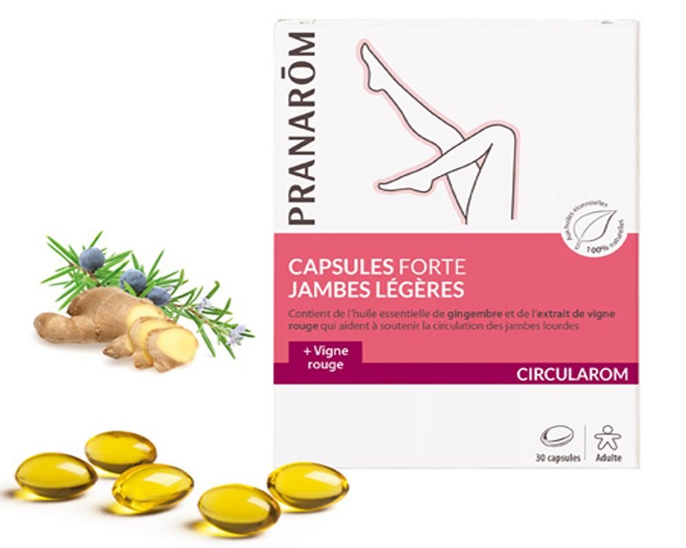 Sa formule synergique, composée d'huiles essentielles bio de gingembre, de genévrier, de citron, de romarin et de pin sylvestre, soutient le confort circulatoire, offrant une sensation revigorante et apaisante aux jambes, notamment après de longues périodes d'immobilité. Ingrédients Huile végétale: Brassica napus* (Colza) ; Gelatin* (Gélatine); Glycerin* (Glycerine); Huiles essentielles: Rosmarinus o cinalis ct cineol* (Romarin), Juniperus communis* (Genévrier), Citrus limon* (Citron), Zingiber o cinale* (Gingembre), Pinus sylvestris* (Pin sylvestre), Antioxidant : Extrait riche en Tocopherol PRANARÔM, L’AROMATHÉRAPIE SCIENTIFIQUE : Pranarôm allie son expertise scientifique à son amour des plantes afin de proposer des solutions ciblées pour maintenir toute la famille en bonne santé au quotidien. Si les troubles de la circulation sanguine ne sont pas régulés, ils peuvent occasionner des œdèmes et laisser apparaître des varices disgracieuses. Pour relancer naturellement la circulation sanguine et ainsi réduire les inconforts parfois douloureux, les laboratoires Pranarôm ont formulé ce complément alimentaire à base d'huiles... Pranarôm regroupe plus de 250 références d’huiles essentielles et d’huiles végétales vierges et bio. UNE SYNERGIE CIBLÉE : Formulée à partir d'huiles essentielles de gingembre, de genévrier, de citron, de romarin et de pin sylvestre pour soutenir le confort circulatoire particulièrement après une position statique longue. Le tout est dilué dans de l’huile végétale de Colza (Brassica napus). À avaler avec un peu d’eau. CONSEILS D'UTILISATION : À partir de 12 ans, une capsule au début ou pendant le repas, 1 à 3 fois par jour pendant la période délicate. MAINTIENT LE CONFORT CIRCULATOIRE : Ce complément alimentaire aux huiles essentielles bio aide à maintenir le confort circulatoire et ainsi contribue à une sensation de jambes légères, notamment dans le contexte d'un mode de vie sédentaire. Jambes lourdes : recette gel fraîcheur express | Pranarôm Huile Essentielle Pranarôm Oléocaps Oleocaps 1 Throat Nose 30 Capsules Jambes Lourdes Circulation Drainage Comment soulager les jambes lourdes et douloureuses ? | Jule Aymé... Les informations ci-dessous s'appliquent à chaque unité du pack