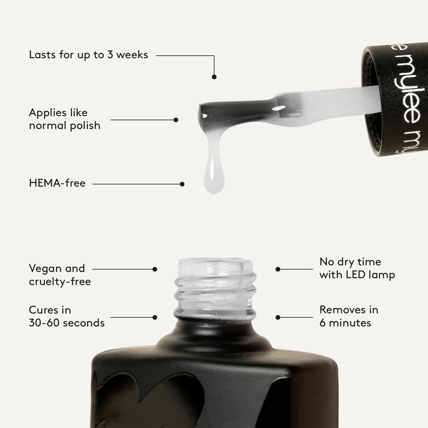 Marque Britannique - Le vernis semi-permanent Mylee est soigneusement formulé pour les professionnels de beauty et les utilisateurs à domicile ; les 200 et quelques couleurs sont sélectionnées et évaluées au Royaume-Uni et sont conformes aux normes britanniques et européennes 1 Préparation 2 Appliquer calques 3 Cap bords 4 Enfermez-le 5 Hydrater les ongles hero-video Vidéo de marchand Comment enlever le vernis gel Mylee avec Mylee Magic Gel Remover, notre Gel Remover ou l'acétone Le Mylee Magic Gel Remover est le gain de temps ultime et enlèvera votre vernis en seulement six minutes, jusqu'à 2,5 fois plus rapidement que les techniques de retrait habituelles. Convient pour les ongles naturels, les ongles en acrylique, les faux ongles et les capsules (tips). Enfermez-le Appliquez MyGel Top Coat, puis catalysez pendant 30 secondes sous lampe LED. Le vernis semi-permanent Mylee est facile à appliquer et nécessite un séchage sous lampe UV ou LED (vendue séparément)Système Impeccable - Se marie parfaitement... Obtenez des manucures au gel impeccables jusqu'à 3 semaines; ne vous attendez pas à des éclats, des taches, des entailles ou des bosses. Hydrater les ongles Après avoir retiré toute couche collante avec Prep & Wipe, massez avec un peu d'huile pour cuticules Rise 'N' Grind - This dazzling shade is your secret weapon for starting the day with a sparkle and keeping the energy high from dawn till dusk. Le vernis semi-permanent Mylee est facile à appliquer et nécessite un séchage sous lampe UV ou LED (vendue séparément) No more waiting around for paint to dry – cure in seconds with an LED or UV Lamp and conquer the world with confidence. Semi Permanent TRAHOO-Mylee Vernis à Ongles Gel Semipermanent 8ml [Rise N Gel Mylee Pour Ongles Alternativement, vous pouvez simplement tremper une lingette non pelucheuse Mylee avec notre dissolvant 100 % pur acétone ou gel et la placer sur la couleur du gel. Simply apply over our Base Coat and seal the deal with one of our Top Coats for a professional gel mani that lasts up to 3 weeks without a chip in sight. Appliquer calques Appliquez la couche de base MyGel et catalysez pendant 30 secondes. Système Impeccable - Se marie parfaitement avec le Mylee Base Coat et le Mylee Top Coat et sèche sous lampe LED ou UV. video Vidéo de marchand