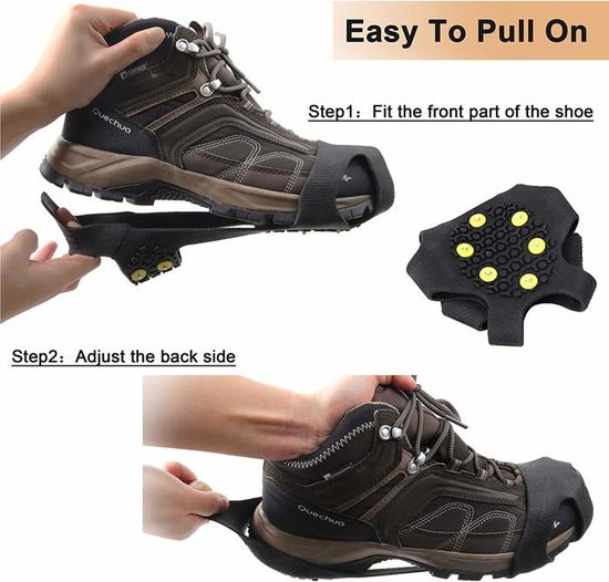 Les clous de traction utilisent des clous en acier spéciaux à prise au sol pour fournir une excellente traction sur la glace et la neige, aidant à éviter ces conditions glissantes dangereuses. La conception est fixée pour le pied avant et présente de bonnes propriétés anti-usure et antidérapantes., 3., Il convient à un large éventail de personnes et de scénarios d'application, et c'est une arme antidérapante en hiver et au printemps. Les crampons de traction mesurent 10 cm x 5,5 cm et sont livrés avec une sangle élastique réglable qui s'adapte à toutes les tailles de chaussures et facilite... Emballage du produit : Nom du produit : couvre-chaussures/crampons antidérapants Matériau : alliage d'acier au silicone/manganèse Nombre de dents : 6 dents Couleur : noir À propos de la taille des chaussures: Ce produit est une taille libre, convient aux chaussures de taille 8, convient aux chaussures de taille 36-43., Utilisation : il peut être utilisé avec diverses chaussures de sport de plein air, chaussures en cuir, chaussures tout-aller, chaussures de randonnée et bottes de montagne. Il convient à la glace, à l'herbe, aux sols glissants humides et à d'autres environnements. Les pointes de chaussures sont le meilleur cadeau d'hiver pour la famille, les amis et vous-même. Il convient à la randonnée en plein air, à la traversée, à la pêche sur glace, à la pêche d'hiver et à la randonnée en plein air humide. 2 Paires Crampons neige et glace- Crampons Alpinisme - Crampon La conception à double chaîne de l'attelle de traction la rend plus durable et solide. 🗻【Facile à transporter】 Il peut être rangé dans le sac à main qui l'accompagne sans prendre trop de place. Cette attelle de traction est facile à mettre et à enlever, convient aux bottes, baskets, chaussures décontractées et chaussures habillées. Chaussures Anti Verglas 2 Paires Crampons - Antidérapant Sur Chaussures/ Bottes Clous Piolet Alpinisme Crampons Neige Crampons pour bottes d’hiver pour neige et glace de Due North... 🗻【Sécurité】 Les crampons et la chaîne des crampons sont en acier inoxydable à haute résistance et ne se plient jamais. Facile à monter et à descendre.