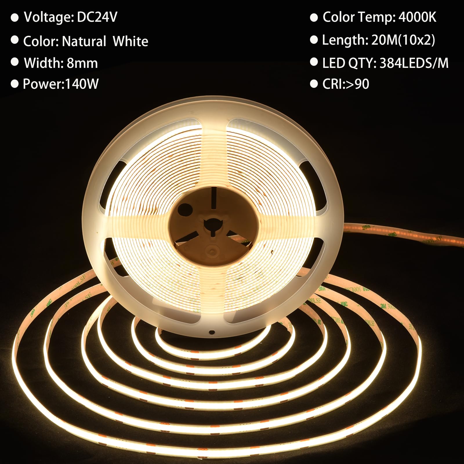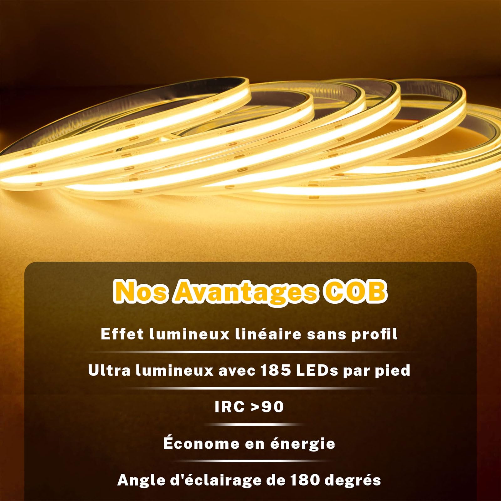 Utilisez même l'application mobile, la télécommande vocale ou RF pour contrôler les bandes lumineuses sous n'importe quel angle (distance de la télécommande : dans un rayon de 15 m en zone ouverte). Tous les 50 mm, ils peuvent être coupés le long des marques de coupe sur la bande et reconnectés par soudure ou avec des connecteurs COB MIWISE de 8 mm. IWISE Kit de conectores de 0.394 pulgadas para tira LED COB RGB de 4... Que ce soit pour la décoration de la maison ou une exposition commerciale, nos produits peuvent répondre à vos besoins Conçue avec la technologie LED COB (COB) qui intègre plusieurs puces LED dans un module pour un éclairage plus uniforme sans points noirs. Avec différentes fonctions telles que la gradation, la minuterie, le mode musique, la fonction mémoire et le contrôle de groupe MIWISE Ruban LED COB 20 m CRI 90 + 6000 K Lumière du jour Blanc Super Lumineux Télécommande RF Fonctionne avec Alexa/Google pour DIY Projets Cabinet Chambre Cuisine Sécurité et longue durée de vie : la bande LED COB MIWISE est certifiée UL et basse tension de 24 V, ce qui est plus sûr à utiliser. Utilisez la boîte de commande pour changer et ajuster la luminosité. IWISE CCT COB - Tira de luz LED sintonizable blanca, 10 regulable... Chaque détail a été soigneusement conçu et rigoureusement testé pour garantir une qualité supérieure et d'excellentes performances. Bande Led Cob TTWAY Ruban LED COB 20M, Bande LED 6000K Avec Alimentation, Télécommande, 384LEDs/M, DC24V, CRI 90 , Largeur 8mm, Ruban LED Blanc Froid Pour Décoration Maison (2x10m Ruban Led Cob Blanc Le réveil de vos bandes LED avec des commandes vocales simples rend votre utilisation plus pratique. Cette bande LED COB dispose de 6400 perles de lampe qui offrent un éclairage en même temps. Découpable et fait maison : les bandes LED COB MIWISE sont si flexibles. Par rapport aux bandes LED SMD traditionnelles, elle dispose d'un angle d'éclairage de 180 degrés et couvre une zone plus large Ruban LED COB 4000K,10M DC24V,Bande LED Blanc Naturel avec Alimentation/télécommande,324LEDs/M