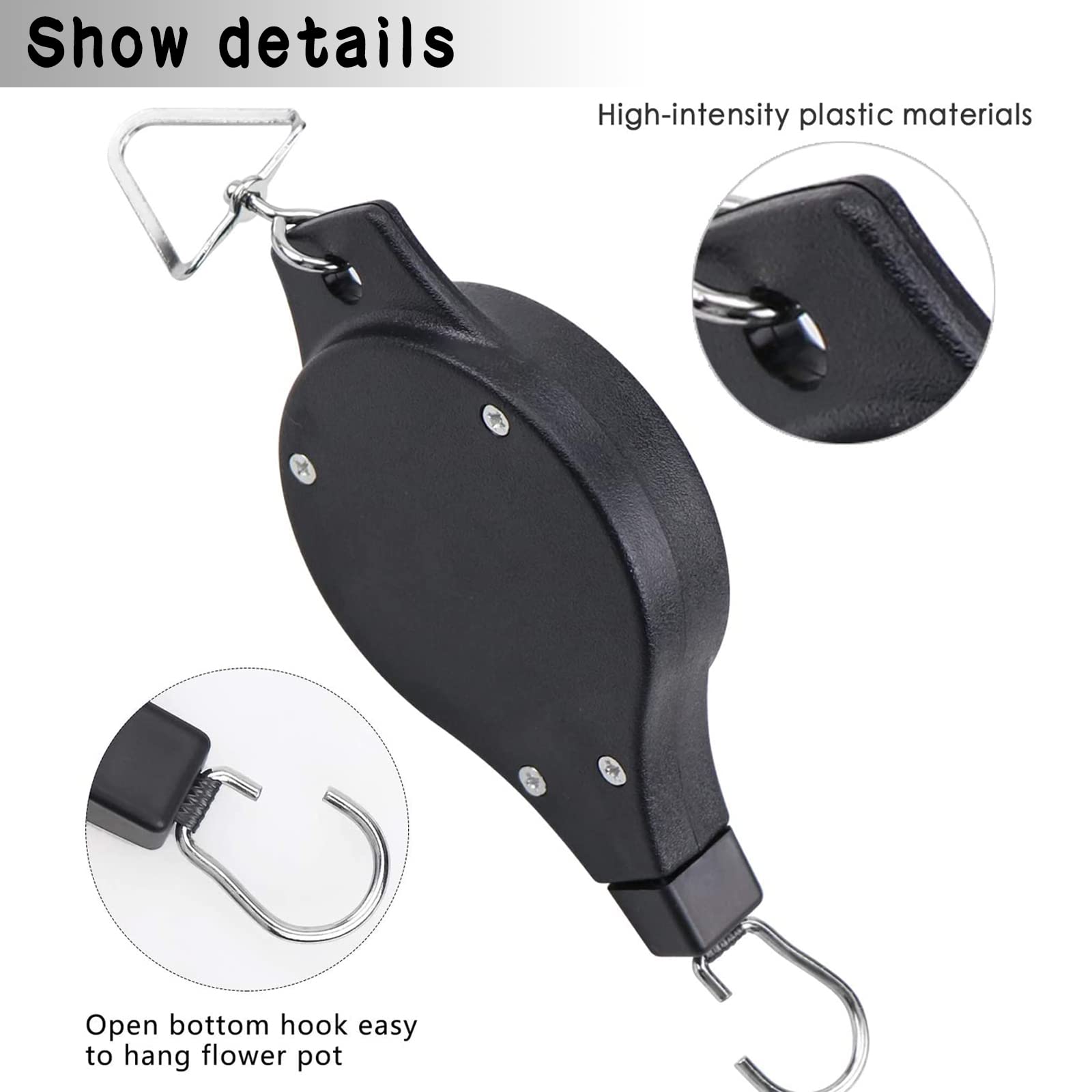 * Caractéristiques : 2 crochets télescopiques, 3 crochets télescopiques, 4 crochets télescopiques, 5 crochets télescopiques., *Couleur : blanc. Chaque poulie pour plantes est livrée avec une sangle interne et équipée de deux mousquetons faciles à utiliser. [Polyvalent] : accrocher des paniers en utilisant cette poulie est un moyen fantastique d'exposer vos fleurs ou plantes. Facile à utiliser Vous avez juste besoin de placer votre pot avec un cintre pour plantes au crochet, et vous pouvez ajuster la longueur du cintre. 【Facile à utiliser】: la poulie de plantes est idéale pour une utilisation sur le balcon, elle vous permet de soulever et d'abaisser les plantes suspendues librement et beaucoup plus facile d'arroser les plantes suspendues. 【Emballage et taille】: le paquet comprend des poulies pour plantes. Contenu de la livraison : 2 crochets télescopiques pour plantes. Poulie réglable pour plantes : ces poulies pour plantes sont conçues pour contenir des paniers suspendus décoratifs dans la cour, le jardin ou le balcon. Robuste et durable : les cintres robustes peuvent être verrouillés à n'importe quel niveau et se rétractent lorsque vous en avez besoin. ou 5 crochets télescopiques pour plantes. 【Polyvalent】 : accrocher des paniers en utilisant cette poulie est un moyen fantastique d'exposer vos fleurs ou plantes. Poulie De Panier Retractable MEGXIT Lot De 2 Poulies Rétractables Pour Plantes, Suspension Réglable Poulie Pour Panier Suspendu La poulie à crochet pour plantes avec extension et longueur maximale jusqu'à 88,9 cm, vous pouvez rapidement tirer et descendre les plantes et les... Poulie de Panier Suspendu, Crochet de Panier De Fleurs Réglable, Cintre à Tirer pour Plantes