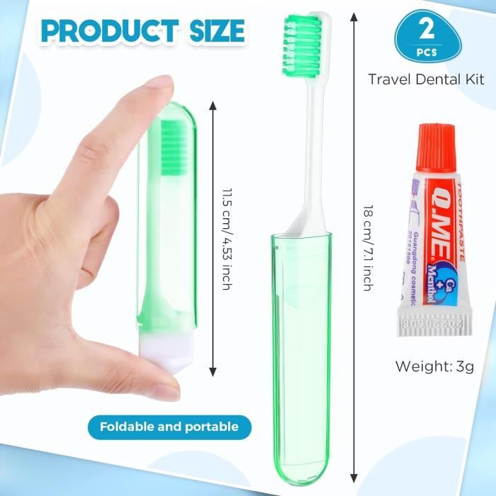 Description du produit Kit de voyage : vous recevrez 4 brosses à dents de voyage, assez pour la maison ou les voyages, se glissent facilement dans vos bagages et ne prennent presque pas de place. Elles sont également idéales pour le camping, la randonnée et la randonnée Large application : la brosse à dents de voyage est légère, réutilisable, facile à transporter, vous pouvez la mettre dans des sacs, des sacs à dos, des sacs à cosmétiques, des porte-documents, des portefeuilles, et la brosse à dents de voyage pliable convient pour une utilisation en extérieur, comme le camping, les voyages, les voyages d'affaires, et le fitness. Mini brosse à dents et dentifrice - Se brosser les dents en randonnée et en voyage - Origin Outdoors Toothbrushkit Travel Kit de voyage : vous recevrez 4 brosses à dents de voyage, assez pour la maison ou les voyages, se glissent facilement dans vos bagages et ne prennent presque pas de place. Brosse A Dent Pliable Sibba Lot De 4 Housses De Brosse à Dents Pliables Manuelles Kit De Voyage Poils Souples Mini Kit Brosse A Dent Voyage Pliable et portable : le kit de brosse à dents de voyage est pliable, la longueur est de seulement 11,4 cm, ce qui est très petit et exquis. Avertissement De Sûreté Ce produit ne convient pas aux enfants et ne doit pas être considéré comme un jouet. Design ergonomique : le manche de la brosse à dents de voyage pliable est ergonomique, tient confortablement dans la main et la poignée stable rend le brossage des dents un plaisir. Pliable et portable : le kit de brosse à dents de voyage est pliable, la longueur est de seulement 11,4 cm, ce qui est très petit et exquis. C'est un must have...