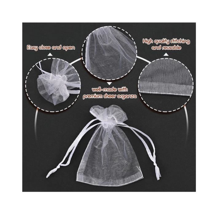100 pochettes à bijoux blanches Idéal pour les dragées, les mariages, le rangement de bijoux, le bricolage et la décoration , Matériau : 100 % polyester Carehabi - Paquet De 100 Sachets En Organza, Sachet En Organza Coloré Sachet En Organza Chouchou En Organza Blanc À Franges Perlées | Accessoires | PLT FR 100 Sachet Organza 100 pochettes à bijoux blanches · Dimensions au choix (largeur x hauteur) : 7 x 9 cm, 10 x 12 cm, 11 x 15 cm · Idéal pour les dragées, les mariages, le rangement...