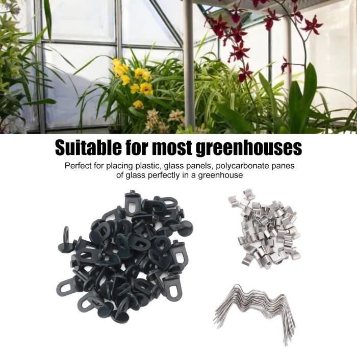 Matériau : Fabriqué en acier inoxydable de haute qualité, antirouille, solide et durable, peut être utilisé pendant une longue période. Clips de vitrage pour serre de jardin inoxydable - VGEBY - Kit de réparation de fenêtre en verre Achetez Clips de vitrage de serre pour panneaux de verre – Clips en Z en acier inoxydable 304 avec fil à ressort, fixations antirouille pour cadres de serre... 【60 pièces】 : il y a 30 clips de vitrage de serre en acier inoxydable et 30 clips de chevauchement en Z, deux formes et quantité suffisante pour répondre à un usage quotidien et au remplacement Fabriqué en acier inoxydable de haute qualité, il a une haute résistance à la rouille et une longue durée de vie. Dimensions : Clips en Z : 1,2 x 0,9 cm. Les pinces de verre de haute qualité garantissent la sécurité de votre serre. Matériau : les pinces de verre de serre sont fabriquées en acier inoxydable de haute qualité, haute résistance à la rouille et ne rouille pas, robustes et durables Clips de vitrage W : 7,7 x 3 cm. Convient pour presque toutes les serres à cadre en aluminium, utilisé pour installer le verre de serre dans le cadre en aluminium. Pour ce modèle de serre, la bâche de couverture de la serre est avec un ourlet et une cordelette, ce qui ne nécessite aucun clips pour sa fixation. Pour la fixation des bâches pignons et des deux portes de serre, 60 clips sont fournis avec ce modèle Clips Serre Clips Acier 30 Mm Pour Bâche De Serre | Serre En Direct Serre Verre Taille de l'article : 25 clips de fixation de type W mesurent 7,7 x 3 cm, 25 clips de chevauchement en Z mesurent 1,2 x 0,9 cm, avec un haut niveau de stabilité