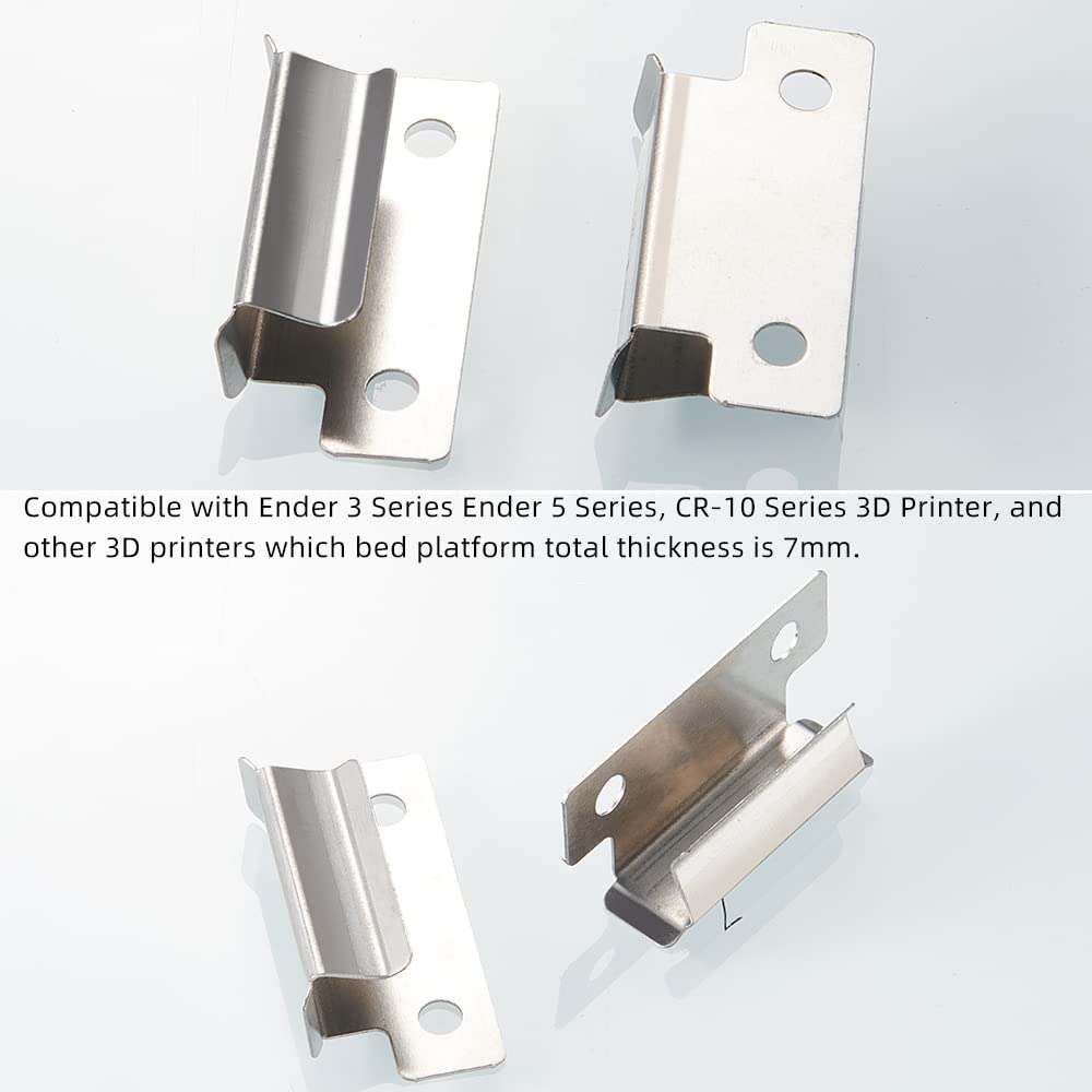 Description du produit : Il est compatible avec l'imprimante 3D Ender 3 pro Ender 3 V2 Ender 3S Ender 5 Pro CR-20 PRO et d'autres imprimantes 3D dont l'épaisseur totale de la plate-forme de lit est de 7 mm. Tous originaux et de haute qualité avec une assurance qualité à 100 %. Pinces De Lit 'imprimante 3D 10 Pinces De Lit 'imprimante 3D Matériaux de haute qualité : chaque pince à verre 3D est fabriquée en alliage d'aluminium, qui est très résistant, résistant à la corrosion... Installation facile : vous n'avez pas besoin d'utiliser d'autres outils, il suffit de serrer la pince directement, ce qui est simple et pratique. Pince A Verre 10 Pièces Pinces De Lit D'imprimante 3D Pince 7mm Pour Pince Pour Imprimante 3d Le lit Les pinces à clips sont en acier inoxydable, qui ne rouille pas facilement, a une longue durée de vie, sans bavures et ne vous rayera pas les mainsSpécifications :Couleur : argentMatériau : inoxydable acierL'emballage comprend :10 x pinces à clips de lit Ce clip est utilisé pour les plateformes de 7 mm d'épaisseur (généralement des plaques d'aluminium de 3 mm d'épaisseur et des plaques de verre de 4 mm) 10 pinces de lit pour urgence et remplacement. Pince de lit chauffante - RNCYN - Ender 3 v2 - Aluminium réglable...
