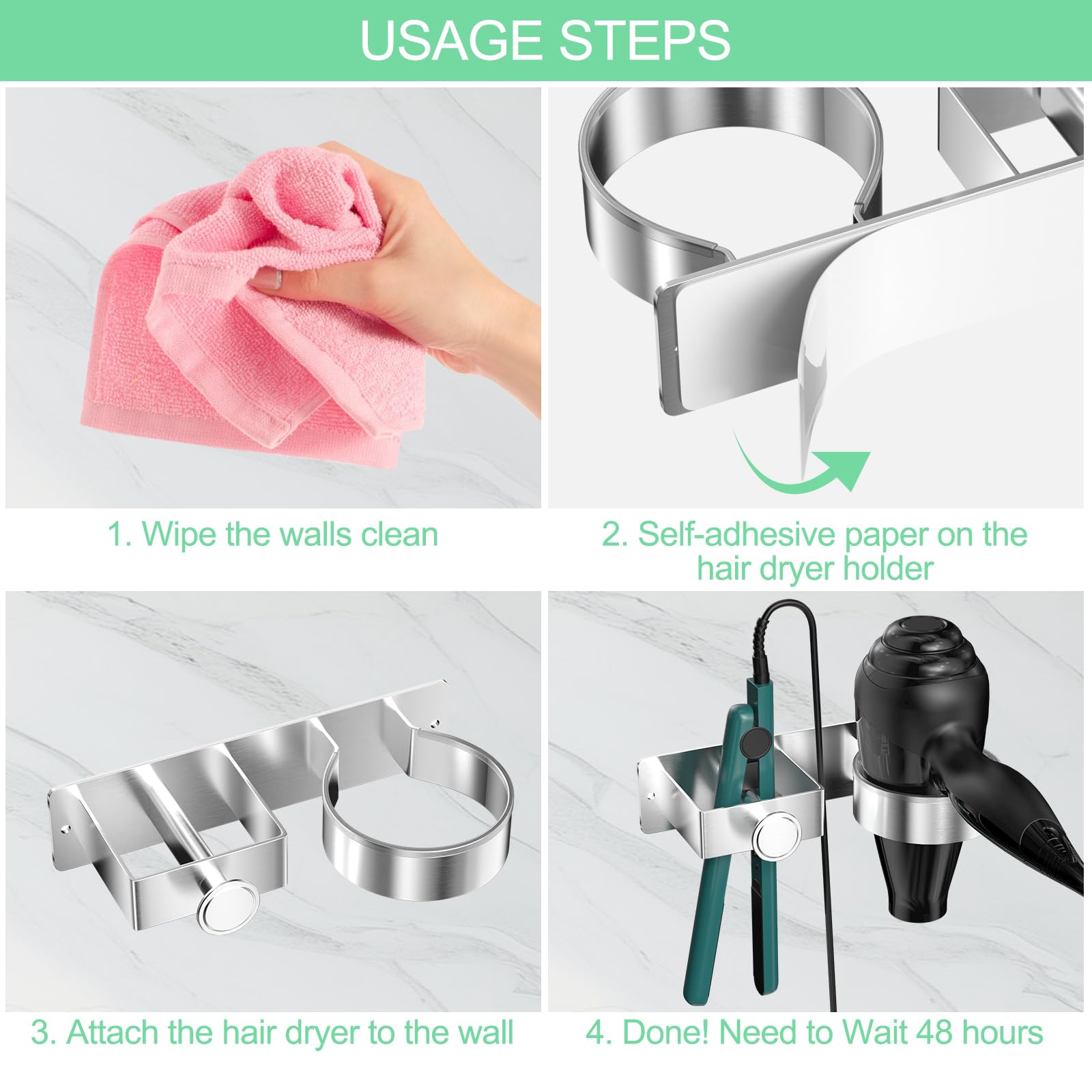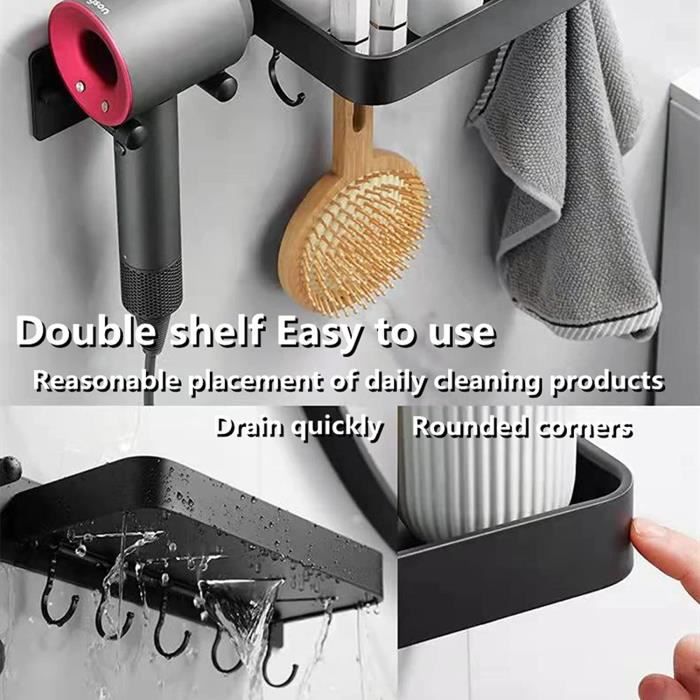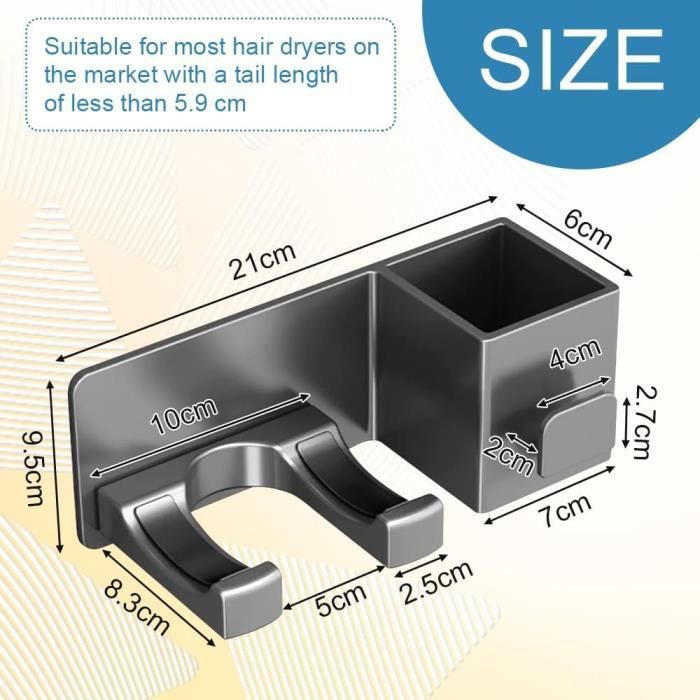 Merci de votre compréhension. Conception sans perforation : Le support pour sèche-cheveux se fixe rapidement et facilement au mur. Ces accessoires astucieux se fixent facilement sur les surfaces lisses grâce à des ventouses ou des adhésifs puissants. Ainsi, vous pourrez garder votre sèche... Compartiment de rangement et tablette coulissante : Le support pour sèche-cheveux sans perçage dispose de compartiments de rangement pour les petits objets tels que les peignes, les rasoirs, le dentifrice et les brosses à dents. La conception de la table enrouleur permet un rangement compact des câbles, évitant ainsi leur emmêlement et leur permettant d'être rangés proprement., 5., Compatible avec la plupart des types et tailles de sèche-cheveux, il convient aux salles de bains, hôtels, salons de coiffure, chambres et autres lieux. Matériau épais et robuste : Fabriqué en PET de haute qualité, ce support pour sèche-cheveux sans perçage présente une surface et des bords lisses. Quels sont les avantages de notre support pour sèche-cheveux ? 1., Fabriqué en PET de haute qualité, ce support présente une surface et des bords lisses. La tablette coulissante permet également de suspendre des élastiques à cheveux, des boules de bain, des accessoires et autres objets, pour un rangement organisé sans encombrer votre bureau. Remarques : Les dimensions sont mesurées manuellement, de légers écarts sont donc possibles. CSPARKV Porte Sèche Cheveux Support, Support Seche Cheveux avec Range... Polyvalent : Dimensions : 25 x 11,5 x 9 cm, compatible avec la plupart des sèche-cheveux et de toutes les tailles, idéal pour les salles de bains, les hôtels, les salons de coiffure, les chambres et autres pièces. Support Seche Cheveux Porte Seche Cheveux Mural Sans Percage Et Lisseur Accroche Seche Cheveux Nous répondrons à vos questions dans les plus brefs délais. Convient aux murs lisses comme le marbre, l'acier inoxydable, le carrelage et le verre., 3., La fente en U, sans perçage, assure la stabilité du support et empêche tout basculement ou chute., 4., Il dispose de compartiments de rangement pour les petits objets tels que les peignes, les rasoirs, le dentifrice et les brosses à dents. Sa finition soignée lui confère une grande résistance aux chocs, au vieillissement et une grande durabilité. Caractéristiques : Matériau : PET Couleur : comme illustré Dimensions totales : 25 x 11,5 x 9 cm Contenu de l'emballage : 1 - Support pour sèche-cheveux sans perçage Garantie après-vente : Pour toute question, n'hésitez pas à nous contacter. GGQ sans Percage Support Lisseur, Support Seche Cheveux Mural, Inoxydable Porte Seche Cheveux et