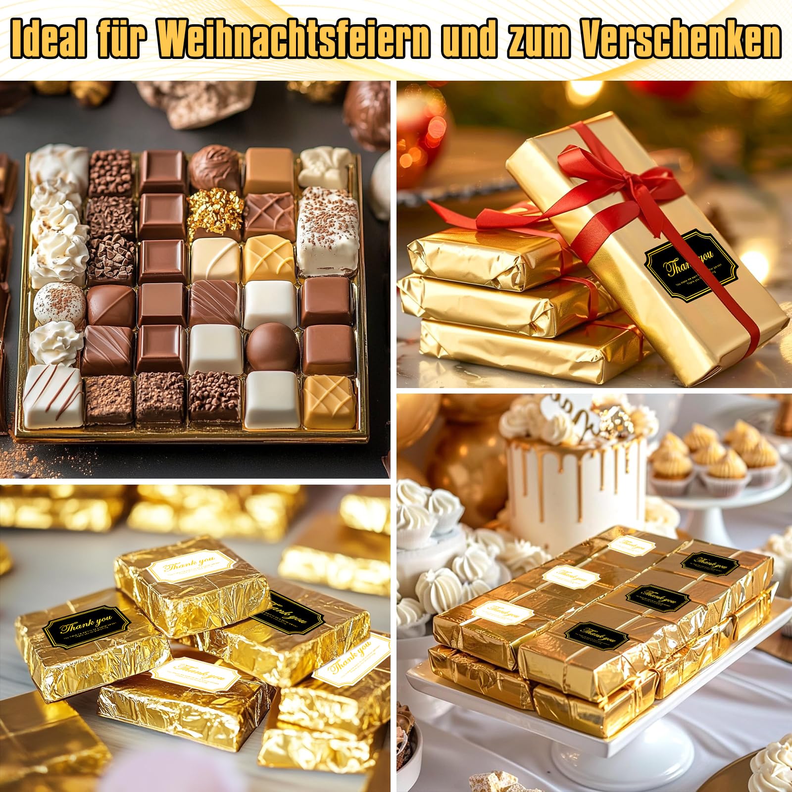 【Taille polyvalente】 : Avec une dimension généreuse de 19 cm × 16 cm, la feuille d'or Auiremrti est parfaite pour les grandes barres de chocolat de Dubaï et bien plus encore. 【Pour les fêtes et occasions spéciales】 : Que ce soit Noël, Pâques, Halloween, le Nouvel An ou la Saint-Valentin, le papier doré Auiremrti est le choix idéal pour les emballages festifs. Feuille D Or Alimentaire Patisserie Auiremrti 100 Pieces Gold Paper For Dubai Chocolate, 120 Emballage Tablette Chocolat Dubai Sans danger pour les aliments : Cette feuille d'emballage n'est pas seulement attrayante visuellement, mais elle est également sans danger pour les aliments, vous permettant d'emballer en toute confiance une variété de confiseries. Cet emballage durable est non seulement un choix plus noble que le papier aluminium traditionnel, mais garantit également que vos cadeaux impressionnent en toute circonstance. La livraison comprend cent feuilles d'or ainsi que cent vingt étiquettes pour parfaire votre emballage La livraison comprend cent feuilles d'aluminium doré ainsi que cent vingt étiquettes pour peaufiner votre emballage cadeau., 2., 【Élégance exclusive】: L'emballage en feuille d'or Auiremrti offre une solution luxueuse et élégante pour emballer le chocolat et autres confiseries. Du chocolat aux biscuits en passant par les barres de céréales, la feuille d'or Auiremrti préserve le goût et l'arôme de vos friandises préférées tout en Du chocolat aux biscuits en passant par les barres de céréales, le papier d'or Auiremrti préserve le goût et l'arôme de vos gourmandises préférées tout en offrant une présentation élégante. et explorez des millions de vecteurs professionnels sur Freepik. Maquette de logo doré de luxe sur papier texturé | PSD Premium Chocolat de Dubaï - 100 grammes de chocolat au lait entier à la... Cet emballage garantit que vos présents suscitent toujours l'enthousiasme avec leur superbe design., 5., 【Sûr pour les aliments】: Cette feuille d'emballage est non seulement attrayante visuellement, mais aussi sûre pour les aliments, ce qui vous permet d'emballer sans souci une variété de confiseries. Ce matériau de haute qualité confère à vos cadeaux une touche de noblesse et garantit qu'ils se démarquent visuellement., 3., 【Revêtement luxueux】: Notre feuille d'or est composée d'une couche de papier robuste recouverte d'un revêtement doré de qualité supérieure. Cet emballage durable est non seulement une alternative plus élégante que le papier aluminium traditionnel, mais il garantit également que vos cadeaux paraissent majestueux dans n'importe quel environnement. Parfait pour le chocolat de Dubaï et autres délices exquis qui méritent un emballage spécial., 4., 【Pour fêtes et occasions】: Que ce soit pour Noël, Pâques, Halloween, le Nouvel An ou la Saint-Valentin, le papier d'or Auiremrti est le choix idéal pour des emballages festifs. Images de Emballage Luxe Chocolat – Téléchargement gratuit sur Freepik