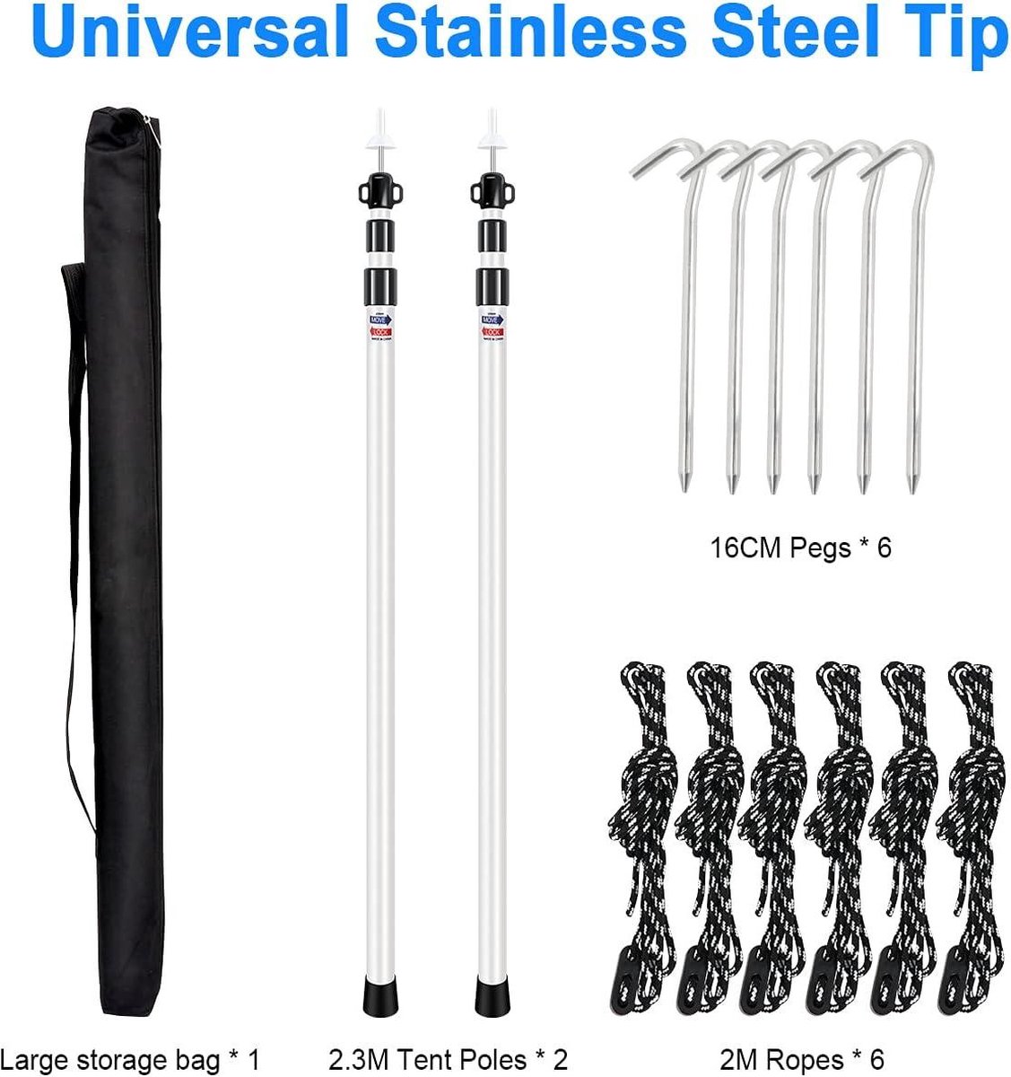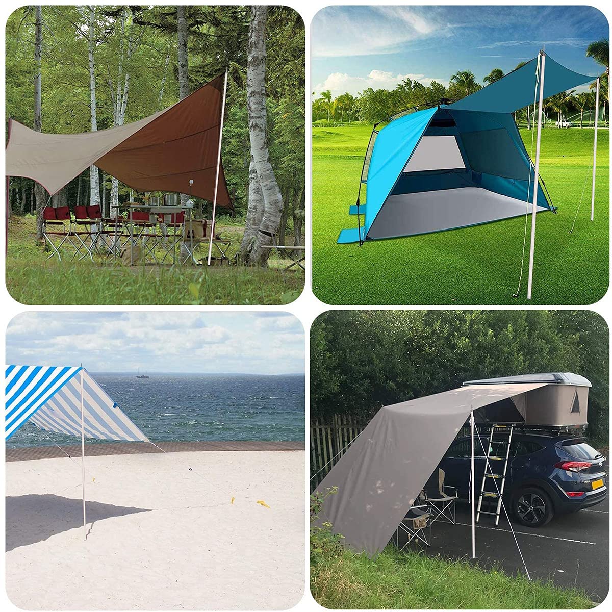 L'ensemble fournit tout ce dont vous avez besoin pour un usage quotidien et des remplacements. 【Facile à assembler】: ces poteaux télescopiques sont simples à assembler, il suffit de connecter les 5 sections et de les insérer dans le sable pour plus de stabilité. Construction robuste en fibre de verre : fabriqués à partir de fibre de verre épaisse, ces poteaux offrent une excellente résistance au vent et stabilité pour vos poteaux de camping Utilisation polyvalente : idéal pour le camping, les fêtes sur la plage et la pêche sur le lac, ces poteaux d'auvent pliables sont parfaits pour installer des tentes ou un auvent d'ombrage. C'est un kit complet pour un usage quotidien et des remplacements. Le haut de chaque poteau de camping dispose d'une boule en mousse de 5 cm fixée avec un adhésif pour éviter les déchirures du tissu et améliorer la stabilité. Ensemble complet pour grande tente : ce lot comprend 2 poteaux de tente de rechange, 2 cordes de serrage, 4 piquets et un sac de rangement. Ils offrent praticité et commodité, améliorant vos activités de plein air. Ils sont parfaits pour les voyages, le camping, les fêtes sur la plage et d'autres activités de plein air. Notre ensemble de poteaux de tente est adapté pour une utilisation répétée à long terme, à assembler lors de l'utilisation, à ranger pour la sécurité lorsque... Utilisation polyvalente : idéal pour le camping, les fêtes sur la plage et la pêche au lac, ces poteaux d'auvent pliables sont parfaits pour installer des tentes, des parasols ou des abris temporaires. Poteaux Remplacement Auvents Tentes Lot De 2 Piquets De Tente Plage - 2m Alliage Aluminium - Pliables - Pour Camping Et Plage Support Tente Pliable Facile à assembler et à utiliser : les poteaux de tente sont faciles à assembler, il suffit de connecter les 5 sections et de les insérer dans le sable pour une installation sécurisée. Chaque poteau se compose de 5 sections, pour un total de 2 m, ce qui les rend parfaits pour remplacer les pièces de tente Neso Grande. Conçus pour résister aux intempéries difficiles, ils garantissent une utilisation durable. Le haut de chaque poteau dispose d'une boule en mousse de 5 cm, fixée avec un adhésif pour éviter les déchirures du tissu et améliorer la stabilité. Lot de 2 poteaux de tente en fibre de verre noirs assemblés