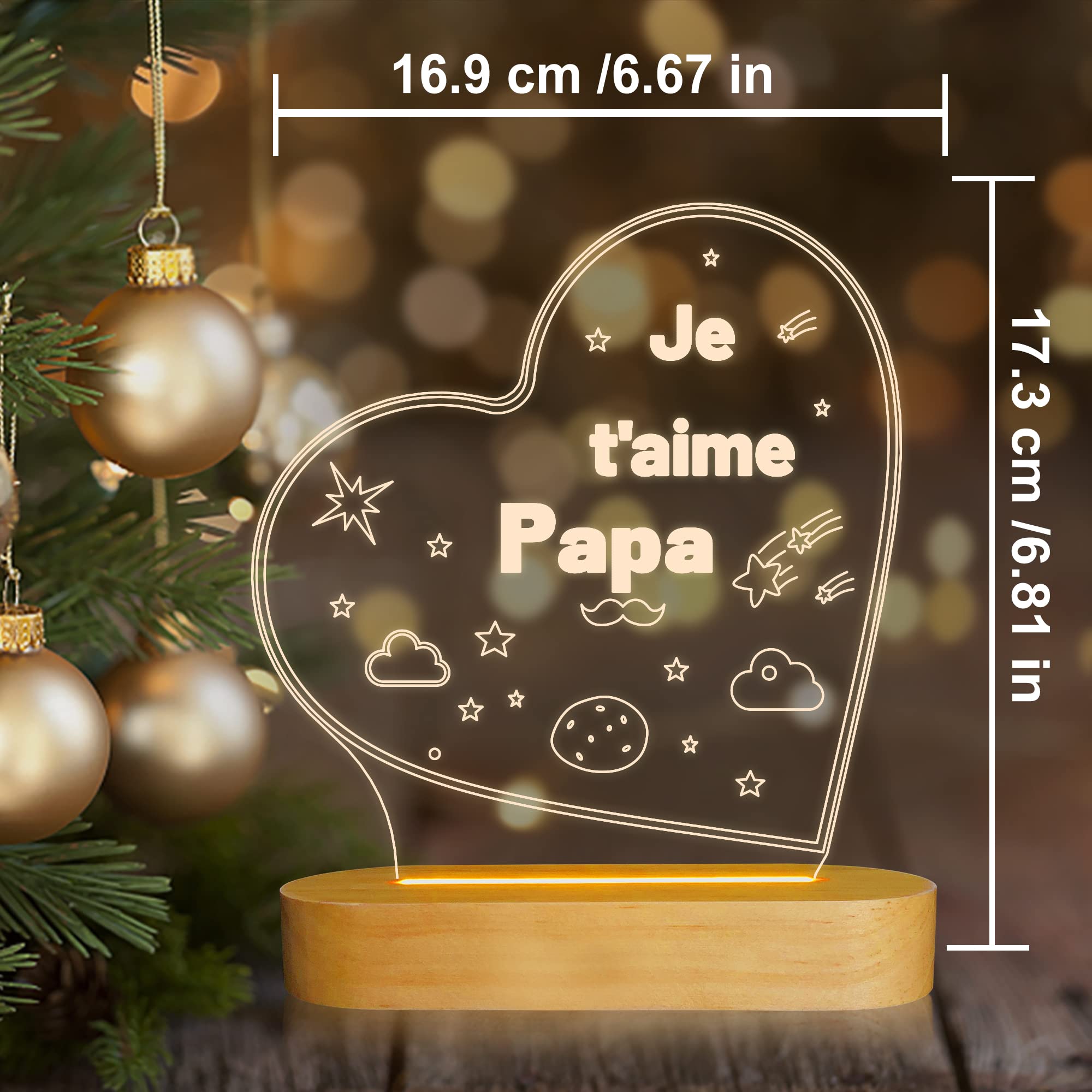Ce sera des cadeaux parfaits pour diverses vacances telles que les cadeaux d'anniversaire, les cadeaux de Noël, les cadeaux de la Saint-Valentin, les cadeaux de fête des mères, les cadeaux de fête des pères, etc. Chez King Jouet, on a rassemblé pour vous des idées pleines de créativité et de bonne humeur, pensées pour tous les styles de papas : bricoleurs, rêveurs, stratèges ou fans de pop culture. De quoi offrir bien plus qu’un cadeau : un vrai moment à partager, un souvenir à construire ensemble Ampoules LED Luminaires Code EAN: 5171741087898 En-tête / Fabricant: TECH DISCOUNT Type de Produit: Ampoules LED Origine_import: All-in-one Titre: 3D Veilleuse 3D Visuel Ampoule Illusion D'Optique Coloré Led Lampe De Table Tactile Lumière Romantique Je T'Aime D Si vous rencontrez des problèmes liés à votre satisfaction d'achat, n'hésitez pas à nous contacter. En outre, elle est alimentée par USB, ce qui signifie que vous pouvez la connecter à n'importe quel port USB pour obtenir de l'électricité. Design unique : cette veilleuse en bois est ornée d'une fine gravure au laser qui crée des cadeaux uniques pour la fête des pères pour votre père ou votre grand-père. La lumière chaude crée une atmosphère paisible, parfaite pour la prière, la méditation ou tout simplement pour se détendre. Votre satisfaction est notre priorité. Lumière chaude : la veilleuse a une lueur chaude et apaisante, ce qui la rend parfaite pour une utilisation comme décoration d'intérieur ou veilleuse. Idée cadeau parfaite : cette veilleuse 3D est un cadeau parfait pour la fête des pères. Idées Cadeaux Fête Des Pères 10 Cadeaux De Fête Des Pères DIY à Préparer Avec Les Enfants Des Idées Idées Cadeaux Pour Son Papa Design unique : cette veilleuse en bois est gravée au laser avec une finition fine, créant des cadeaux uniques pour la fête des pères, parfaits pour votre... Fête des pères : idées cadeaux pour tous les papas
