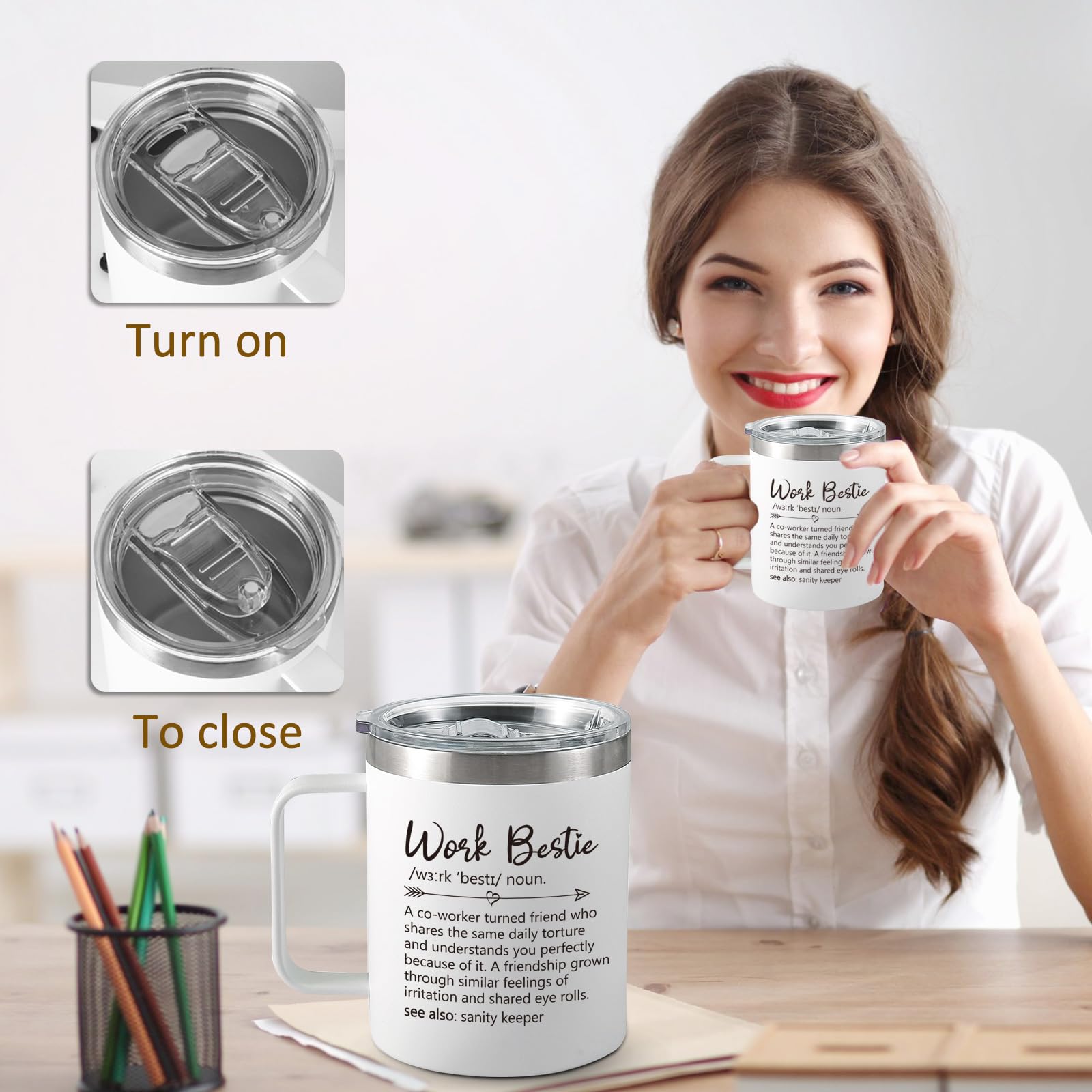 La céramique de qualité supérieure rend ces tasses à café amusantes pour le travail en toute sécurité pour contenir diverses boissons. La tasse à café Work Bestie est le meilleur moyen pour votre meilleure amie d'égayer le nouveau jour avec beaucoup de rire Faites-vous plaisir ou offrez-le à vos collègues de travail. La tasse à thé personnalisée Work Best offre une touche dynamique et personnalisée à votre routine matinale. Parfait pour savourer votre boisson chaude préférée tout en travaillant ou en vous relaxant. Idéal pour les amateurs de thé et de café qui souhaitent personnaliser leur collection de verres. Idéal pour offrir pour des anniversaires, des vacances ou pour se faire plaisir... Une pièce utilisable pour boire des boissons et pour une vitrine. L'impression ne s'estompera jamais, peu importe le nombre de lavages. Les produits internationaux ont des conditions distinctes, sont vendus depuis l'étranger et peuvent différer des produits locaux, notamment en ce qui concerne l'ajustement, la classification par âge et la langue du produit, l'étiquetage ou les instructions. Une jolie tasse (cadeau/achat) pour vos amis, employé du mois, tasses de travail, tasse de travail pour femme. Cadeau de bureau amusant pour collègue, tasse humoristique d'employé le plus gentil au monde, cadeau de meilleur ami au travail, tasse 40 oz, anniversaire de travail de bureau, père Noël secret Cadeau idéal pour les collègues, tasse à café amusante pour que vous et vos collègues de commencer votre journée du bon pied. Passe au lave-vaisselle et au micro-ondes, tasse amusante pour le travail, tasses bestie, le travail serait sucer sans vous Matériau en céramique de qualité alimentaire. Mug Work Bestie - Cadeau Amusant Pour Femme - Tasse De Bureau Cette tasse présente un dicton plein d'esprit, parfait pour ajouter de l'humour au lieu de travail, ce qui en fait un cadeau idéal pour les amis et collègues... Bien sûr, il passe au lave-vaisselle et au micro-ondes, tasse à café adaptée pour le travail Tasse de travail mignonne. Matériau en céramique durable, sûr et sain pour boire.