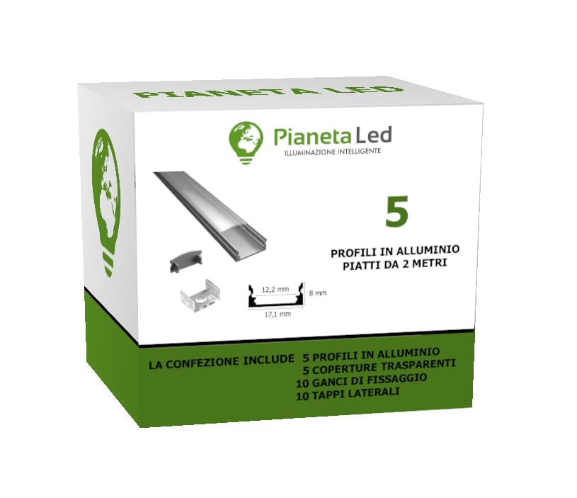 Kit barres de 2 mètres chacun de profils en aluminium pour rubans à LED (bande LED non incluse dans l'annonce, mais vendue séparément). PCB d'une largeur maximale de 11 mm et d'une épaisseur maximale de 3 mm. Fabriqué en aluminium 6063 très fin, qui permet de dissiper la chaleur émise par la bande LED pour augmenter sa durée de vie. Ce profilé est conçu pour encastrer les rubans LED, améliorant à la fois l'esthétique et la performance tout en prolongeant la durée de vie des rubans grâce à la capacité de l'aluminium à dissiper efficacement la chaleur Ce profilé aluminium de 2 mètres est conçu pour accueillir deux rangées de rubans LED ou un ruban double rangée, offrant une diffusion lumineuse optimale et... Profilé Ruban Led Aluminium Profilé Aluminium Ruban Led Type L6 Pour Plaques Verre Ou Plexiglass 6 à 8mm Barre De 2m Aluminium Pour Ruban Led Vous recevrez donc pour chaque barre 2 clips de fixation + 2 fermetures latérales. Profilé aluminium saillie 8x12mm pour ruban LED 5mm Embouts et crochets pour l'installation inclus Transparente avec transparence de 99 % et maximum de lumière transmise., Modèle TL1205., Dimensions : L 2000 x l 17 x H 7 mm. Dimensions : L 2000 x l 17 x H 7 mm PCB d'une largeur maximale de 11 mm et d'une épaisseur maximale de 3 mm