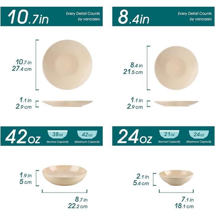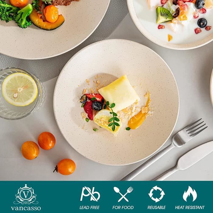 Ensembles de vaisselle pour 4 Les services de vaisselle appropriés peuvent transformer un repas ordinaire en événement gastronomique. Commencez par réfléchir au contexte : cherchez-vous un service pour tous les jours ou pour les grandes occasions ? La durabilité est essentielle pour un usage quotidien. Les matériaux tels que le grès ou le verre trempé sont donc idéaux car ils r... Voir la liste complète sur Le choix de la vaisselle ne se limite pas à l’aspect esthétique. Le matériau et la qualité de fabrication jouent aussi un rôle essentiel. Les services compatibles avec le micro-ondes et le lave-vaissellesont un gage de commodité, tandis que les finitions résistantes à l’écaillage maintiendront l’éclat de votre vaisselle pendant de nombreuses années... Voir la liste complète sur Créez l’atmosphère appropriée avec de la vaisselle de qualité. Chaque élément doit compléter les autres, pour créer un cadre harmonieux et plaisant qui donne le ton. Commencez par une palette de couleurs ou un thème qui reflète la saison ou votre style personnel. Mélangez les articles de vaisselle pour ajouter profondeur et intérêt mais gardez un f... Voir la liste complète sur Parfait pour les repas quotidiens ou les événements spéciaux. Ensemble Vaisselle En Grès 12 Personnes Rustique 36 Pièces Durable et élégant, c'est également un cadeau idéal pour Noël, une pendaison de crémaillère ou un mariage. Ensemble Vasselle en Grès 6 Personnes Rustque 24 pèces - Servce de... Service de table 16 pièces en grès avec assiette Matériau et artisanat : fabriqués par des artisans qualifiés en céramique de qualité supérieure, nos ensembles de vaisselle sont cuits au four à haute température pour une durabilité accrue et une utilisation quotidienne. Service de table pour 4 : nos ensembles d'assiettes et de bols en servent quatre, comprenant 4 assiettes plates de 28 cm, 4 assiettes à salade de 22 cm, 4 bols à soupe de 530 ml et 4 tasses de 293,5 g.