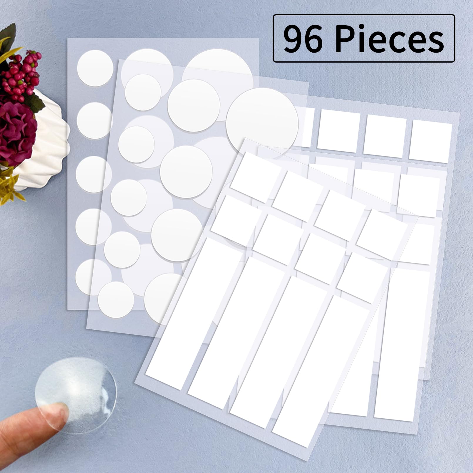 craspire 96 Ruban Adhésif Double Face pour Mur La quantité et les spécifications sont suffisantes pour répondre à vos besoins d'utilisation Cependant, il ne convient pas aux murs poudreux, aux murs avec de la peinture écaillée, aux murs recouverts de papier peint ou aux murs humides. Ruban adhésif double face résistant : Le adhesif double face est fabriqué adhésif transparent sans trace avec une forte adhérence, ce qui est très approprié pour accrocher et coller des objets de petite et moyenne taille, assurant une fixation ferme et durable, éliminant le fardeau de la décoration. Il comprend différentes formes et tailles pour s'adapter à vos besoins spécifiques, tout en garantissant une adhérence forte et durable sans laisser de traces. Contenu : 96 pièces de scotch double face transparent Notre scotch double face est disponible en différentes tailles, ce qui le rend flexible à utiliser et s'adapte à différentes situations. Longueur de 12 mètres environ. Description du produit Choisissez notre ruban adhésif double face amovible pour murs ! Contenu de l'emballage : Vous recevrez 96 pièces de scotch double face transparent, avec deux spécifications de carré et de rond, le carré a 16 rectangles (2,5 x 9 cm) et 32 carrés (2,5 x 2,5 cm), le rond a 20 petits cercles (2,5 x 2,5 cm), 16 cercles moyens (3,5 x 3,5 cm) et 12 grands cercles (4,5 x 4,5 cm). Le ruban adhésif bidirectionnel peut être facilement retiré sans laisser de traces, évitant ainsi d'endommager la surface collée. Ruban Adhésif Double Face Lot De 96 Transparent,Bandes Adhésives De Double Face Extra Fort C'est un incontournable pour la maison, le bureau, l'école, la fête, le mariage, la décoration Rouleau de Ruban adhésif double face transparent. . . La bande de suspension pour tableau mesure 0,8 mm d'épaisseur et a différentes formes pour répondre aux besoins de diverses scènes Large gamme d'utilisations : Le ruban adhésif double face transparent n'affectera pas la beauté générale lorsqu'il est utilisé et peut être utilisé pour accrocher des tableaux, des cadres photo, des affiches, des ballons, des prises, des objets de décoration de chambre, des tapis, etc. Ce ruban adhésif mural est très adapté pour accrocher et coller des objets de petite et moyenne taille en raison de sa force adhésive excessive. Ruban adhésif double face puissant : ces bandes, carrés et points adhésifs sont très bien adaptés pour accrocher et coller des objets de petite et moyenne... Les bandes adhésives pour murs adhèrent aux surfaces lisses telles que le plastique, le bois, le verre, la céramique, le métal, offrant une solution adhésive complète pour les objets de différentes formes.