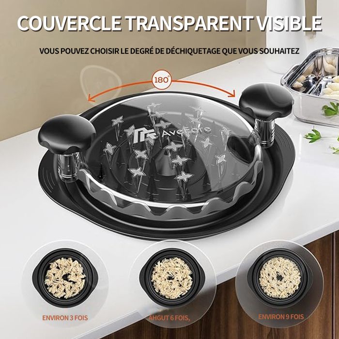 endommageant d'autres couverts, la viande râpée est prête en quelques secondes, sans tracas et parfaitement portionnée, ce qui permet de en douceur et sans poudre. Avec un couvercle transparent à pois et des dents intégrées, il est facile à utiliser. Broyeur De Viande Efficace Broyeur De Poulet, Grand Outil De Déchiquetage De Poitrine De Poulet, Hachoir à Viande Manuel, Bande Antidérapante, Poignée Ergonomique, Sans BPA | Leroy Merlin Meilleur Broyeur Viande La base antidérapante le maintient en place pendant l'utilisation et la brosse de nettoyage incluse facilite le nettoyage. Poids : 316gTaille du produit : environ 25 x 25 x 8,5 cmListe de colisage:1 x broyeur de pouletRemarques:1., En raison des différents effets de moniteur et de lumière, la couleur réelle de l'article peut varier légèrement de la couleur montrée sur les ., 2., Veuillez pardonner un léger écart de mesure dû à la mesure manuelle. Machine à déchiqueter le poulet, outil de déchiquetage, hachoir à Spécification:Nom : broyeur de poulet. Spécification: Type d'article: Broyeur de viande Matériau: ABS Poids : approx. 216g / 7,6oz Taille: Diamètre inférieur: Environ. 18,5 cm / 7,3 po Hauteur: Environ 5cm/2.0in Spécification: En boîte Liste des paquets: 1 x Déchiqueteuse à viande Note: Veillez tenir compte de certaines erreurs de mesure manuelle 【Cadeau parfait】 : il est fabriqué en nylon durable à haute température sans BPA pour des performances durables. Avec Chicken Shredder Pro, vous n'avez pas à vous tromper en choisissant des cadeaux pour Structure simple, facile à utiliser, efficace pour terminer le travail de barbecue/fête de cuisine Nous n'avons plus à nous soucier de la confusion et de l'impuissance provoquées par les couteaux/fourchettes traditionnels, nous pouvons profiter des accessoires assortis pour hachoir à viande fumée Broyeur de poulet Broyeur de viande Broyeur de viande Outil de... Appareils de broyage de laboratoire : tous les modèles, fournisseurs et revendeurs parmi 96 produits. De plus, nous sommes équipés des accessoires d'une brosse si vous souhaitez le nettoyer manuellement. 【Gain de temps et couverture visible】 : grâce à la construction rotative améliorée au milieu et au couvercle transparent visible du broyeur de poulet, vous pouvez déchiqueter les viandes en quelques secondes ou choisir le mode de râpage que vous souhaitez (nug-get de poulet ou poulet râ-pé).