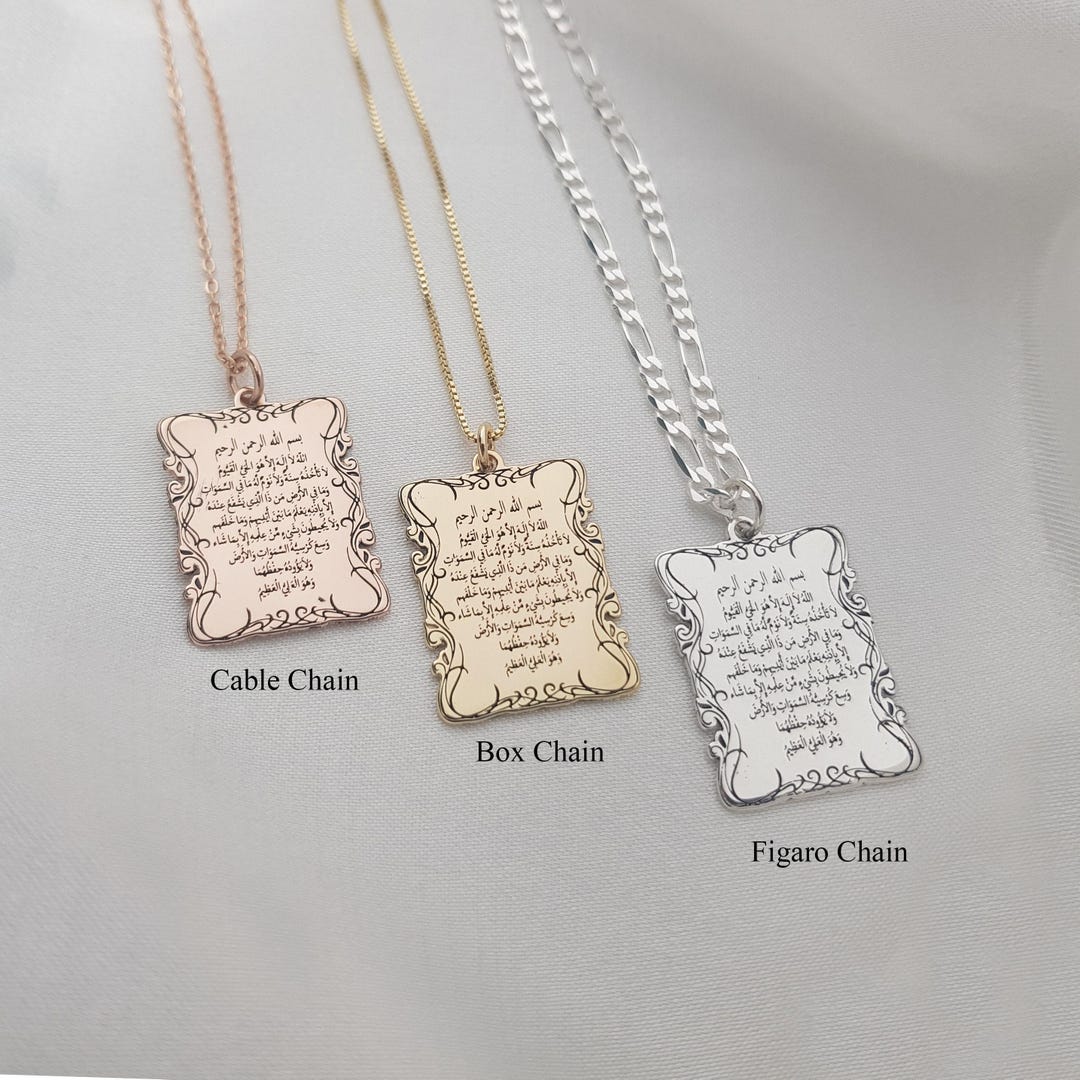 Collier Ayatul Kursi : dans la foi islamique, il y a de nombreux versets du Coran qui ont une signification immense et sont censés posséder une grande puissance et bénédiction. Le pendentif et la chaîne Ayatul Kursi allah conserveront une brillance durable Les musulmans du monde entier récitent ce verset pour un bénéfice spirituel et une protection Cadeau Islam Femme EUEAVAN Collier Ayatul Kursi Avec Pendentif Arabe Dieu Allah Pour Homme Et Femme - Pendentif Musulman - Bijoux Islamiques - Cadeau Pour L'Aïd Et Le Ramadan, Acier Inoxydable, Pas De Gemme Cadeau Aïd The pendant is produced using a high quality print which is protected with clear glass which magnifies the artwork. 99 NAMES OF Allah Pendant Necklace Ayatul Kursi Asma Ul Husna Religious Islamic - EUR 13,65. À VENDRE! The pendant is produced using a high quality print which is protected with clear glass which magnifies the artwork. We hand-cut and assemble the chain, prior to carefully checking each link and clasp to ensure it is perfect. 11PIXELI JEWELRY Product New, handmade items made in the heart of Romania, 115338597393 L'un de ces versets est Ayatul Kursi, qui est souvent appelé le verset du trône. COLLIER MÉDAILLON AYAT AL KURSI – Création Orientale Design : ce collier islamique dispose d'éléments de l'ayatul Kursi arabe islamique, le Coran est une écriture très célèbre en Islam qui enseigne la piété et le détachement du monde, encourageant les gens à se détourner du mal et à contempler les origines de toutes choses dans ce monde Matériau : le collier Allah est fabriqué en acier inoxydable de haute qualité. Symbole significatif : les écritures Ayatul Kursi ont une signification profonde dans l'islam, et les porter comme bijoux reflètent les enseignements et les principes de l'islam et favorise un sentiment de paix intérieure, de protection et de conseils dans la vie quotidienne