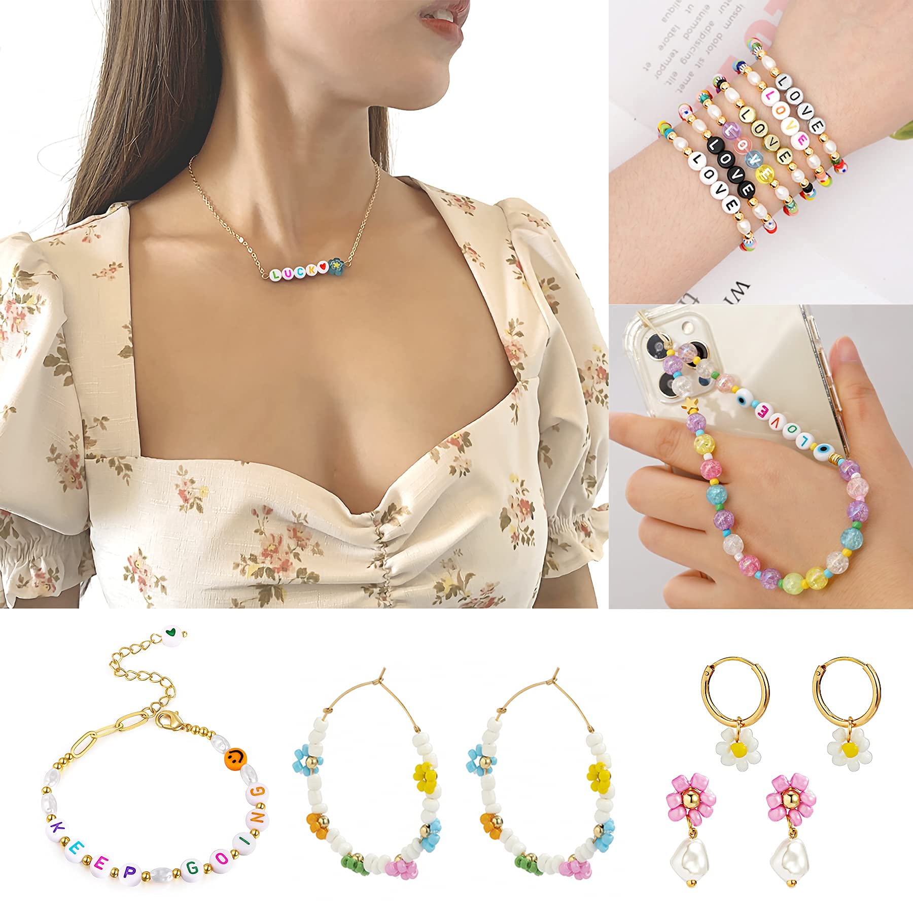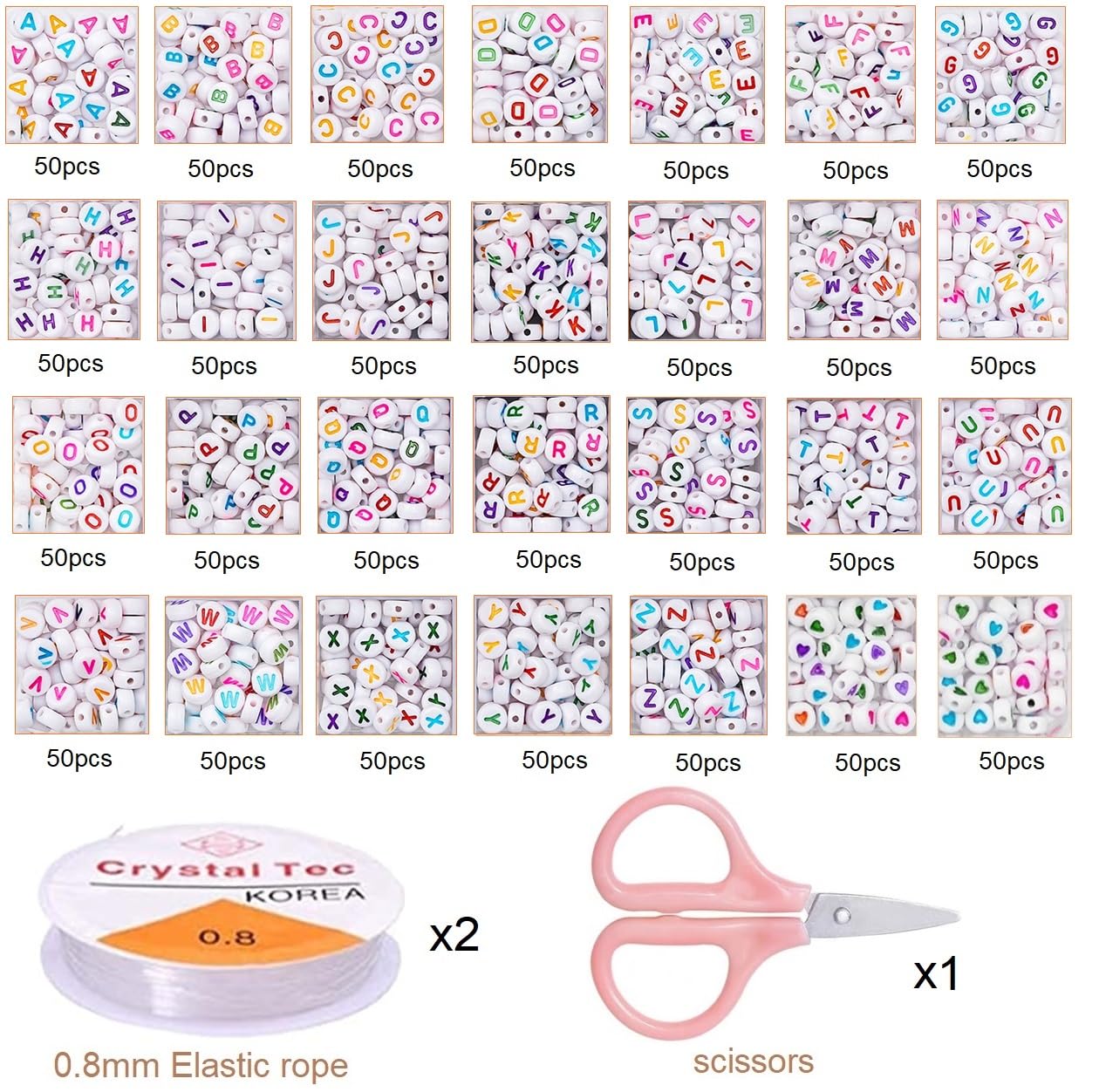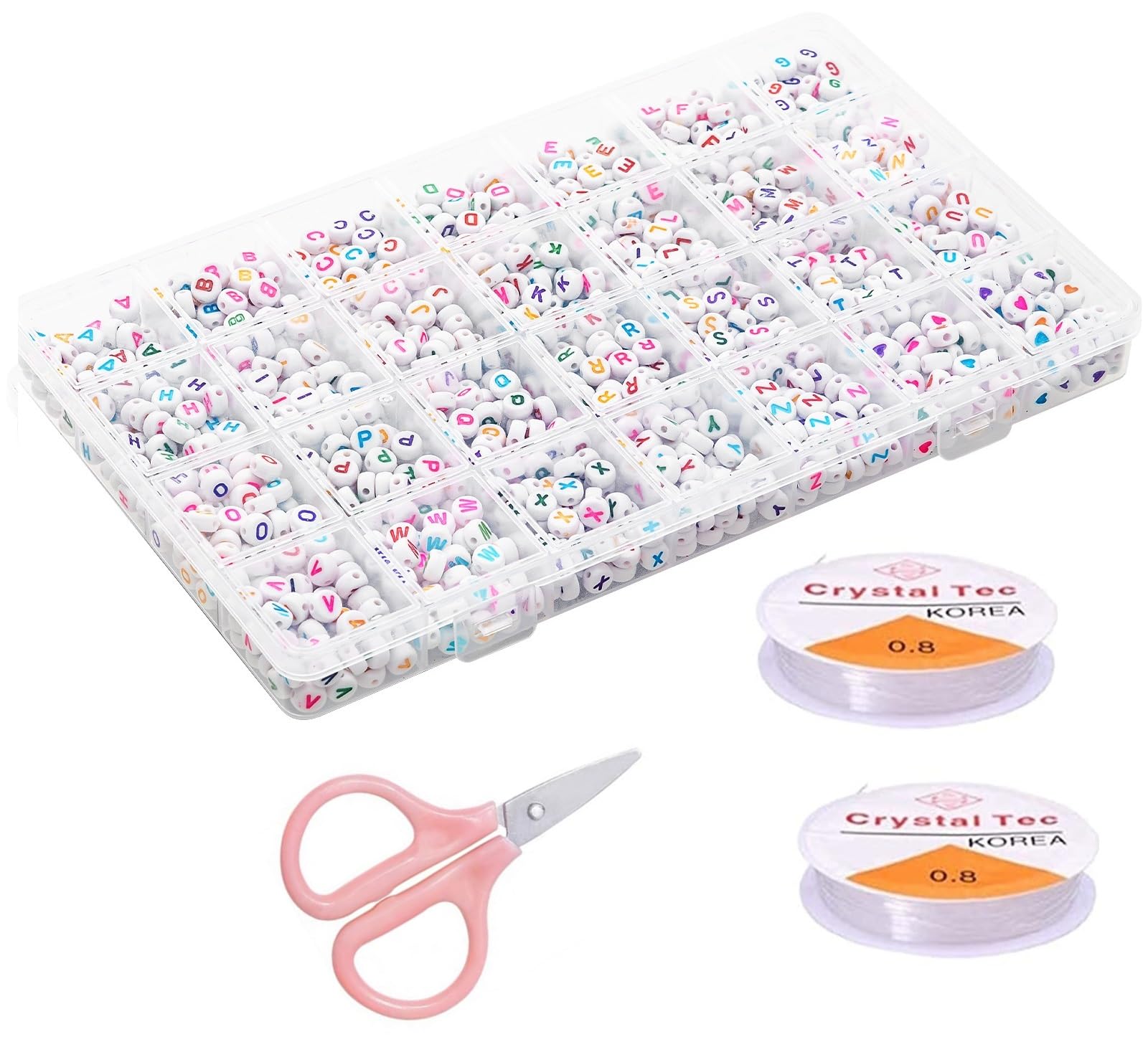 Description du produit YUHIAKE Lot de 1400 perles avec lettres de l'alphabet A-Z et cœur Blanc Rond Multicolore Non seulement nous avons un emballage de boîte de rangement en PP, nous avons également ajouté un emballage extérieur en carton pour nous assurer qu'il ne sera pas endommagé pendant le transport Boîte en carton 24 cm x 20,5 cm x 2,4 cm Boîte en polypropylène 23 cm x 13 cm x 2 cm Contient 26 perles lettres (50 par lettre), 100 perles en forme de cœur colorées, deux rouleaux de fil en caoutchouc de 0,8 mm et une petite paire de ciseaux., Couleurs. Lot de 11365 Perles de Rocaille,3mm 24 Couleurs Perles Pour Bracelet Matériau des perles., Acrylique blanc. YUHIAKE Lot De 1400 Perles Rondes Blanches En Forme De Lettre Vous pouvez en faire des colliers, des chaînes de téléphone portable et d'autres bijoux. Lot de perles alphabet et cœur Contient 26 perles lettres (50 par lettre), 100 perles en forme de cœur colorées, deux rouleaux de fil en caoutchouc de 0,8 mm et... 26 perles de lettre et perles en forme de cœur sont triées dans la boîte en polypropylène, ne vous inquiétez pas qu'elles soient mélangées., Taille standard. Taille : Les lettres et les perles en forme de cœur ont un diamètre de 7 mm, une épaisseur de 4 mm et une taille de trou de 1,5 mm --- Les perles sont rondes et blanches, les lettres et les cœurs sont colorés.