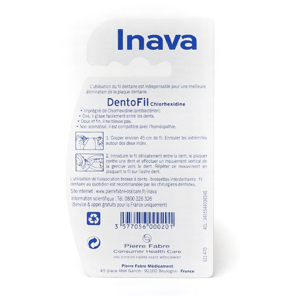 Description du produit Propriétés INAVA DENTOFIL FLUOR 35M Rouleau de 35M -Imprégné de fluor (protection carie) -Extra-plat: fil ruban ciré très resistant. Avertissement De Sûreté Ne pas avaler. Effectuez un mouvement de va-et-vient entre les dents, de la gencive vers les dents pour déloger les impuretés. Fils Dentaires DENTOFIL - Fil Dentaire Protection Carie Fluor Mentholé, 35m | Inava - Parapharmacie Oral B Floss Commandez votre Inava Dentofil Black Fil Dentaire 50 m en ligne sur Nom de la Pharmacie en variable et faites vous livrer à domicile ou en pharmacie avec le Fil dentaire fluor mentholé Dento-fil INAVA, haleine fraiche... L utilisation du fil dentaire Dentofil favorise l élimination de la plaque dentaire et protège contre les caries avec le Fluor qu il contient. Ce fil dentaire ciré et mentholé destiné à nettoyer les espaces interdentaires et favoriser l'élimination de la plaque dentaire Utiliser avec précaution chez les personnes ayant des prothèses dentaires ou des problèmes médicaux., Protection carie mentholé Composition Mode d'emploi Coupez 45 cm de fil et enroulez-le autour de 2 doigts. Ricqles fil dentaire ciré fluoré et mentholé - hygiène bucco-dentaire