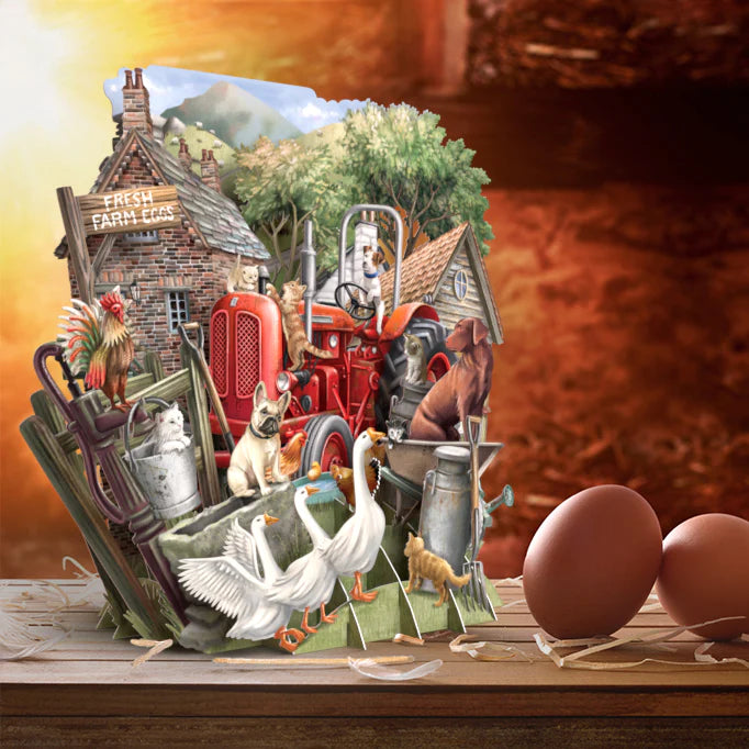 Des moutons pâturés doucement sur les collines aux chatons qui se défoulent sur le classique « Fergie » a rarement une carte pop-up aussi joyeuse que la vie de campagne. Ce design ne manquera pas de vous faire sourire lorsque vous repérez tous les personnages animés qui profitent de leur journée à la ferme , Uh Oh! Est-ce que Sashi, l'impertinent Jack Russel pense qu'il n'y a rien à ce lark ? Quel est le pire qui pourrait arriver ? Fable. Paper D'Art The Farmyard, 3D Pop Up Card - Burley's Gifts Paper D'Art Farmyard Top Of The World Pop Up 3D Greetings Card Découpé avec précision au laser, cette carte est une incroyable explosion de l'ingénierie du papier. Plié à plat, il s'adapte parfaitement dans l'enveloppe fournie et peut être envoyé au Royaume-Uni pour l'expédition Ce design ne manquera pas de vous faire sourire lorsque vous repérez tous les personnages animés qui profitent de leur journée à la ferme., Uh Oh! Livrée avec une enveloppe crème pour l'envoyer et un grand espace vierge au dos pour votre propre message, cette superbe carte est parfaite pour envoyer vos meilleurs vœux partout dans le monde Découpée avec précision au laser, cette carte est un véritable exploit de l'ingénierie du papier. The Farmyard Top of The World Carte de vœux pop-up 3D Aucun assemblage nécessaire