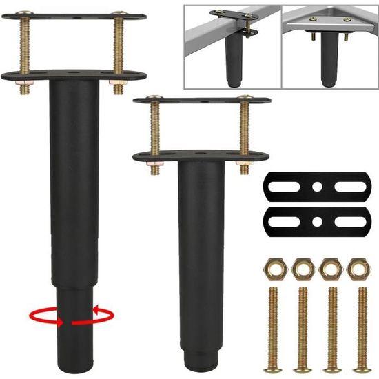 [Hauteur réglable] La plage de réglage des pieds de support est de 18cm à 33cm, vous permettant de régler la hauteur que vous aimez, le réglage de la rotation, pas facile à glisser. [Ensemble complet] Chaque ensemble comprend 2 pieds de support extensibles en forme de T et 4 vis de 60mm, 4 écrous et 2 rondelles pour une installation facile. [Protection du sol] Le bas de chaque jambe est en nylon, ce qui peut protéger le sol et réduire le bruit pendant l'exercice. 1. Matériau à haute dureté : les pieds de lit ajustables sont fabriqués en fer de haute qualité avec un traitement de surface noir mat, antioxydant, avec une haute dureté, une forte ténacité, une super capacité de charge, un support élevé, pas facile à déformer, robuste et durable.2. Respectueux du sol : Les pieds de meuble réglables sont équipés de tampons en caoutchouc... 4pcs Pieds de lit Réglables en Métal pour Meubles Rétractables Noir... Pied Pour Sommier A Lattes 2Pcs Pieds De Lit Réglables 18Cm-33Cm Lit Center Cadre Latte Support Pied Meuble Tv YELIKIT Lot de 4 Pieds de Lit Réglables en Hauteur 18-33 cm