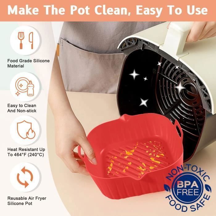 【Facile à nettoyer et antiadhésive】 Je suis adoré que les doublures carrées de friteuse à air en silicone sont totalement en sécurité pour le lave-vaisselle, vous aidez à économiser votre temps et votre énergie après la cuisson. Spécifications: Matériel: 100% de silicone de qualité alimentaire Taille: 20,5x6 cm Taille de pliage: 21x2 cm Couleur: gris / vert / rose Plage de température: -40 C à + 230 ℃ / 450 F Volume de produit: 1700 ml Conseils: 1., Rincez avant chaque utilisation., 2., Veuillez ne pas toucher le feu directement., 3., Il est recommandé de ne pas toucher des abjects nets pour éviter les dommages., 4., Il est normal s'il y a des marques d'eau après le séchage. Le silicone doux facilite également le lavage à la main. [Facile à nettoyer et antiadhésive] Je suis adoré que les doublures carrées de friteuse à air en... Pourquoi adorer le pot de silicone aux frites? Arrêtez de faire du panier de nettoyer votre cauchemar, nettoyez facilement votre friteuse à air! Matériaux de sécurité, technologie innovante, aliments sains, votre choix nécessaire! 【Large application】La doublure de cuisinières à air-fryer est un excellent accessoire de cuisine supplémentaire, adapté au grille-pain, au vapeur, au four, à un pot instantané et à un micro-ondes, etc. Plus de viande graisseuse autour du lutteur aérien, il est maintenant temps de dire au revoir aux taches grasses et séchées et d'innombrables heures de frotter votre friteuse à air! Moule en Silicone pour friteuse à Air, doublure en Silicone pour friteuse à Air, poêle en 【Réutilisable et économiser de l'argent】 Les pots carrés de silicone à fryer à air réutilisables peuvent remplacer d'autres casseroles à air ou papier parchemin jetable. La structure de circulation d'air à 360 soigneusement conçue rend la distribution de la chaleur plus uniforme afin que votre nourriture puisse être parfaitement cuite en un temps plus court et plus de risque d'éclat. N'affectera pas du tout le goût de la nourriture! Papier Cuisson Air Fryer Doublure En Silicone Pour Friteuse - QIILU - Pliable - Résistance Jusqu Basket In Un essentiel culinaire pour les passionnés: les doublures en silicone aux épices aériennes sont réutilisables, faciles à nettoyer, en toute sécurité au lave-vaisselle et une alternative respectueuse de l'environnement aux revêtements de friteaux à air jetables..Que vous soyez un chef chevronné ou quelqu'un qui se réjouit d... Plus de gâchis gras sur le panier de friteuses et préserve l'intégrité et la beauté de votre nourriture. 【Pot en silicone】 Je suis adoré que les doublures de friteuse à air carré sont faites de silicone de qualité alimentaire, qui est résistante à l'huile et à la chaleur, résiste à des températures allant jusqu'à 230 C.