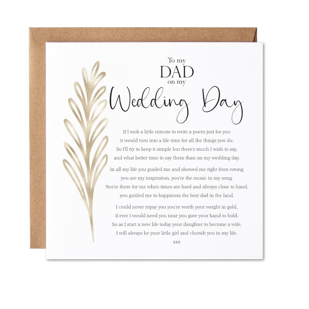 Montrez à votre père combien vous l'appréciez pour vous avoir élevé et à quel point vous êtes fier d'être sa fille ou son fils le jour de votre mariage, ce qui lui laissera une impression profonde. Intérieur vierge, nous laissons un espace pour votre propre message, vous pouvez y écrire quelque chose de gentil. Imprimé sur du papier cartonné épais et lisse de qualité supérieure et enveloppé dans une pochette de protection en cellophane. Nchigedy Carte « To Father In Law On My Wedding Day », carte de jour de mariage pour père du marié ou de la mariée, cadeau de remerciement pour le jour du mariage : : Fournitures pour le bureauNous travaillons fort pour protéger votre sécurité et votre confidentialité. Notre système de paiements sécurisés chiffre vos informations pendant la transmission. Nous ne partageons... Penning a thoughtful, handwritten day-of-wedding letter to your dad will make him know he's instilled the right values and traditions in you Nchigedy Carte De Jour De Mariage Avec Inscription « To Carte de remerciement « To My Brother on My Wedding Day », carte de remerciement à mon frère et sœur