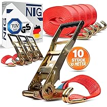 Lot de 4 sangles à cliquet robustes de 2,5 cm x 4,9 m – Résistance à la rupture de 1 088,6 kg Contenu de l'emballage : 4 sangles à cliquet de 2,5 cm x 4,8 m, 4 crochets en S enduits, 4 boucles souples de 38,1 cm Sangle d'arrimage à cliquet noir 5 m x 25 mm Découvrez nos sangles à cliquet, des outils robustes et polyvalents pour arrimer vos biens en toute sécurité. Que ce soit pour le transport, le déménagement ou le rangement, les sangles à cliquet vous offrent une solution pratique et efficace Que vous soyez sur la route ou à la maison, ces sangles sont votre solution préférée Sangle à Cliquet Wurth Lot De 4 Sangles D'arrimage à Cliquet De 2,5 Cm X 4,6 M, Résistantes à La Rupture De 907,2 Kg Pour Déménagement Et Sécurité Moto, équipement De Pelouse, Appareils De Cargaison Pour Sangle D'arrimage A Cliquet Kit de sangle à cliquet amélioré : notre puissant kit de sangles d'arrimage comprend (4) sangles à cliquet robustes de 2,5 cm x 4,6 m avec poignées rembourrées, crochets en S revêtus avec clips de sécurité, et (4) boucles d'arrimage souples de 38,1 cm, toutes étendues et épaisses pour une fiabilité et une facilité d'utilisation ultimes. Applications polyvalentes : nos sangles d'arrimage sont parfaites pour les camions, sécuriser les motos, les cargaisons, les déménagements, les appareils, les planches à pagaie et les bagages pour tout besoin de transport. et une résistance à la rupture assemblée allant jusqu'à 1 088,6 kg, ces sangles peuvent sécuriser en toute sécurité même les cargaisons les plus lourdes, vous donnant la tranquillité d'esprit à chaque transport. BDI Wear Parts Lot De 6 Sangles à Cliquet Robustes De 2,5 Cm X 4,8 M, Résistance à La Rupture De 1 360,8 Kg, Charge De Travail De 362,9 Kg, Sangle De Contenu de...