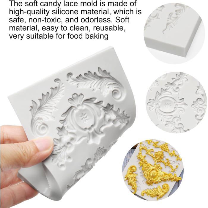 Caractéristiques du Produit Antiadhésif : Moules silicone antiadhésif, le démoulage est très simple, n'endommage pas le produit fini, peut assurer l'intégrité de la décoration de la pâtisserie. Matériaux de Haute Qualité]Moule baroque silicone en silicone alimentaire de haute qualité, ne contient pas de BPA, non toxique, insipide, écologique et sain, sucre moule silicone flexible et élastique, toute courbure n'est pas facile à déformer, antiadhésif facile à démouler, facile à nettoyer, peut être réutilisé de nombreuses fois, longue durée de vie !