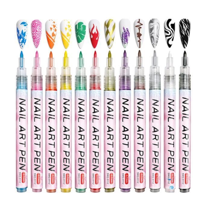 PS STYLO FRENCH NAIL ART Taille : 14cm Contenu net : 3 ml Contenu de l'emballage : 12 stylos à peinture pour ongles., Comment utiliser: 1., Veuillez bien le secouer avant utilisation., 2., Appuyez verticalement sur la pointe du stylet sur le papier pendant 5 à 10 secondes pour épuiser, vous pouvez également appuyer plusieurs fois sur la pointe du stylet jusqu'à ce que l'encre s'écoule., 3., Veuillez ne pas secouer lors de l'utilisation, de peur que le pigment ne se renverse., 4., Fermez bien le stylo après utilisation pour éviter qu'il ne sèche., 5., Une fois la peinture graffiti terminée, attendez qu'elle sèche avant d'appliquer la couche de finition pour ongles. Si vous souhaitez le garder plus longtemps, vous pouvez appliquer un top coat sur vos ongles. Stylo nail art nocibé | axellehair Nail Art Kalolary 12 Couleurs 3D Stylo Graffiti Pen, Stylo Vernis à Stylo Nail Art Ongle Il faut couvrir le capuchon après utilisation pour éviter que le stylo ne sèche. Très approprié comme cadeau pour les filles et les femmes. Occasions applicables :Convient pour un usage domestique et professionnel, peut être appliqué sur du vernis à ongles gel, des ongles naturels, des ongles en acrylique et des faux ongles. Jusqu'à ce que le dessin soit terminé, le vernis de finition peut être appliqué sur l'image après séchage à l'air libre. Instructions : secouez vers le haut et vers le bas pour mélanger l'encre uniformément avant utilisation, puis appuyez sur la pointe du stylo à plusieurs reprises jusqu'à ce que l'encre s'écoule. Stylo de Graffiti imperméable pour Nail Art couleur or noir Gel UV... Noter: Lorsque l'encre ne s'écoule pas de la pointe du stylet ou que la peinture est intermittente, vous pouvez d'abord dessiner sur du coton ou du papier, ou appuyer sur la pointe du stylet jusqu'à ce que l'encre sorte.