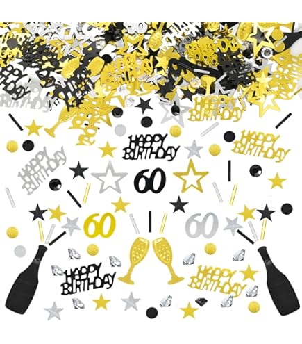 Décoration à disperser de qualité supérieure pour 60e anniversaire noir et or : notre kit de décoration de table d'anniversaire contient 160 pièces de confettis exclusives en noir et or nobles – Parfait pour le 60e anniversaire des femmes et des hommes ! Cette élégante décoration 60e anniversaire femme combine des couleurs intemporelles pour une atmosphère de fête sophistiquée. Qualité supérieure : fabriqué en PVC réfléchissant la lumière de haute qualité. BETESSIN 100Pcs Confettis Table Anniversaire 40 Ans Or Noir Pailletés en Papier Motif Nombre 40 Confettis noirs et dorés pour 18, 30, 40, 50, 60, 70, noces d'or, mariages argentés Décoration d'anniversaire femmes et hommes : le mélange de motifs classiques comme le « 60 », « Joyeux anniversaire », « SELL 1965 », les étoiles brillent élégamment sous la lumière. ALEGRE® Confettis 60 ans Décoration de table 60 ans Femmes Hommes Décoration à disperser Anniversaire Décoration 60e anniversaire Décoration à disperser... Profitez de moments inoubliables avec vos amis et votre famille Cette décoration d'anniversaire femme et homme crée immédiatement une ambiance festive et constitue la cerise sur le gâteau pour votre décoration d'anniversaire de 60 ans. La décoration d'anniversaire 60 ans est également idéale pour les 60 fêtes de femme ou les anniversaires Votre satisfaction est notre motivation Idéal pour les anniversaires, les gros confettis anniversaire 60 ans fuchsia permettent de créer une ambiance festive et originale. Ce sont très pratiques non seulement pour marquer l’âge de celui qui fête son anniversaire mais également pour une décoration à la fois singulière et élégante Décoration Anniversaire 60 Ans Femme ALEGRE® Décoration De Table 60 Ans Femmes Hommes Décoration à Disperser Anniversaire Décoration 60e Anniversaire Décoration à Confettis 60 Ans Que ce soit pour le 60e anniversaire d'une femme ou d'un homme, cette décoration à disperser pour anniversaire apporte une touche élégante aux tables, buffets ou dans des sacs cadeaux