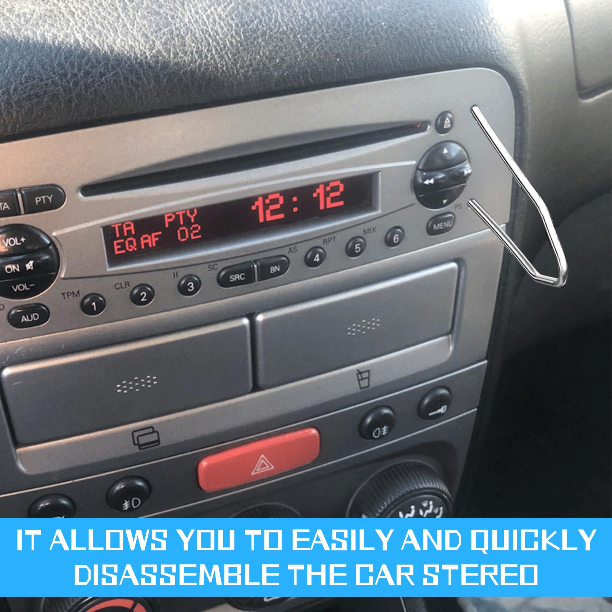 Avec une combinaison de clés en U et en V, ce kit est assez polyvalent pour s'attaquer à un large éventail de systèmes stéréo de voiture. Ce kit d'outils de qualité professionnelle vous permet de retirer et d'installer sans effort les autoradios, améliorant ainsi l'expérience audio de votre voiture. Fabriquées à partir de métal durable, ces clés sont conçues pour durer dans de nombreuses utilisations. Clés de démontage radio : vous recevrez 4 outils de retrait de garniture, chaque clé est spécialement conçue pour une insertion et un retrait faciles. Ce design convivial facilite le retrait de votre autoradio Lot de 4 Installation AUTORADIO - Clés de Démontage d'Extraction - Pour Ford Focus Fiesta Fusion... Lot De 4 Outils De Déverrouillage D'autoradio En Forme De U + V En Que vous mettiez à niveau votre système audio ou que vous effectuiez des réparations, ces outils offrent la précision et la facilité d'utilisation dont vous avez besoin. 4 Clés De Démontage D'autoradio - Acier Inoxydable Ergonomique Pour Voitures 91917971 Qualité professionnelle : fabriquées à partir de métal robuste, ces clés de démontage d'autoradio sont conçues pour supporter une utilisation fréquente, garantissant une performance durable et efficace à chaque utilisation. Le design ergonomique assure une prise en main confortable et un fonctionnement efficace, même dans les espaces restreints du tableau de bord. Design convivial : avec leur design ergonomique, ces outils offrent une prise en main confortable et un contrôle précis, facilitant l'utilisation même dans les espaces exigus du tableau de bord de votre voiture.