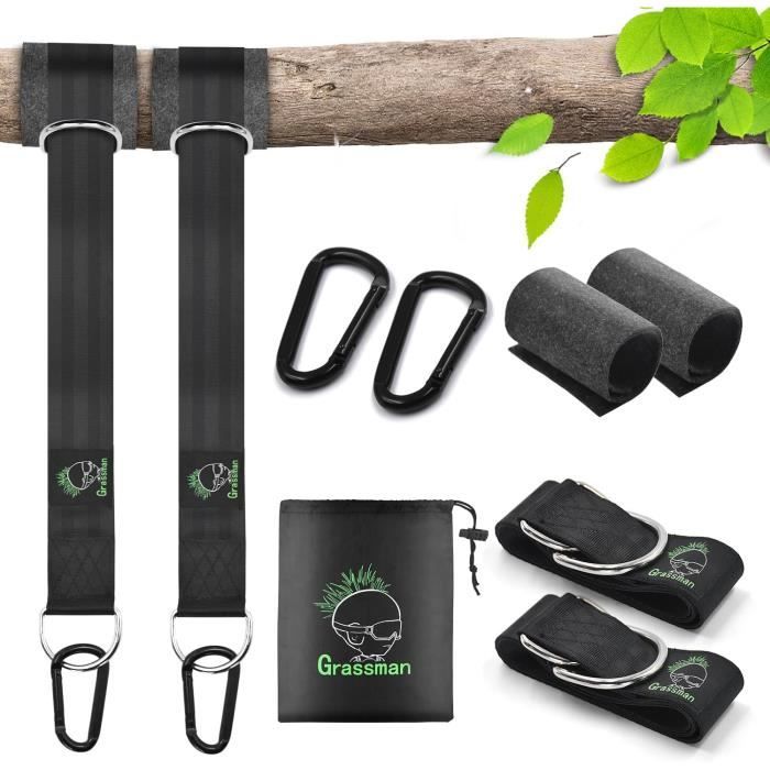 Kit de fixation pour balançoire et hamac - Lot de 2 sangles de hamac de 150 cm - Avec mousquetons, anneaux en D, sac de rangement et coussins de protection pour arbre Lot De 2 Sangles De Fixation Pour Balançoire, 3 M, Avec 2 Mousquetons Robustes Et Anneaux En D, Peut Supporter Jusqu'à 1000 Kg Avec Sac De Rangement... Fixation Pour Balançoire Sangles De Hamac, Hamac Sangles De 2 M, Charge Yomisee Fixation balançoire, Fixation hamac, Suspension balançoire
