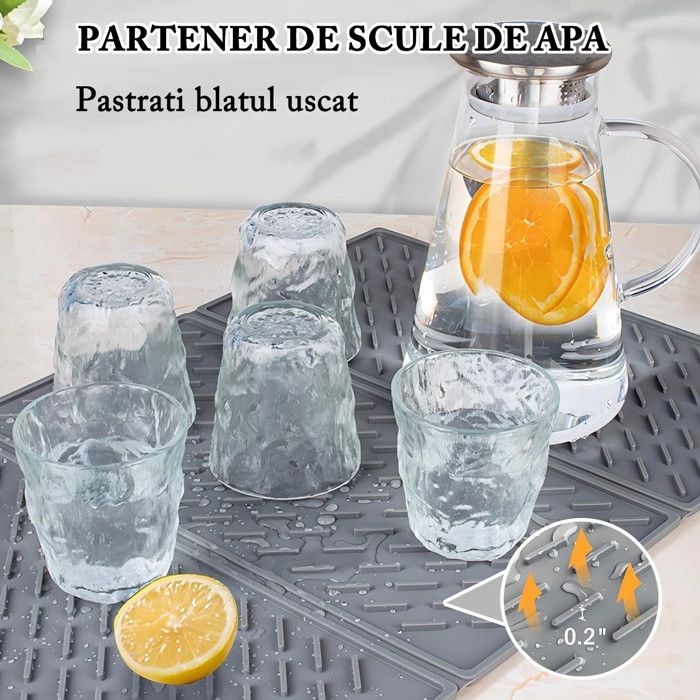 Vous en avez assez des petits tapis de vaisselle difficiles à nettoyer et inefficaces ? Améliorez votre routine de cuisine avec ce tapis de séchage en silicone XXL de 61 x 45,7 cm de LISH. Échantillon gratuit à bas prix Planche à fromage en ardoise noire naturelle just LIVAIA Tapis d'égouttage en Silicone - Égouttoir de Vaisselle Cuisine... Taille extra large : mesurant 61 x 45,7 cm, le tapis de séchage LISH est le plus grand tapis de vaisselle sur le marché, assez grand pour contenir un égouttoir à vaisselle et de la vaisselle avec de la place de rechange. En outre, non seulement il est excellent pour sécher la vaisselle, mais le tapis de vaisselle LISH fonctionne comme tapis de gamelle pour animal de compagnie, doublure de réfrigérateur ou même comme tapis de chaussures pour votre entrée. Fabriqué à partir de silicone de qualité alimentaire, cet égouttoir à vaisselle est sans BPA et sans PVC, de sorte que vous pouvez poser des tasses, des assiettes et des ustensiles en toute sécurité sur sa surface. En cas de déversement, ce tapis en silicone s'essuie facilement, et passe au lave-vaisselle dans le panier supérieur pour un nettoyage facile. Les parois latérales hautes gardent l'eau contenue, gardant vos comptoirs propres et secs. La taille extra large est conçue pour vous donner beaucoup d'espace pour utiliser un égouttoir à vaisselle, avec de la place supplémentaire sur le côté pour des plats supplémentaires. Peu importe ce que vous l'utilisez, le grand sèche-linge LISH en silicone est un ajout polyvalent à n'importe quelle cuisine. Couleur. Gris Ardoise · Matériau. Silicone · Dimensions du produit. 45,7L x 61l centimètres · Marque. LISH · Instructions d'entretien. Passe au lave-vaisselle Tapis égouttoir Soldes SOQKEEN Tapis Egouttoir Vaisselle Silicone 40 × 30 Cm Egoutoire Tapis égouttoir Pour Vaisselle Résistant à la chaleur : le tapis de vaisselle LISH est résistant à la chaleur, vous permettant de l'utiliser comme dessous de plat, pour protéger les comptoirs et les tables des casseroles ou appareils chauds, ou comme grille de refroidissement.