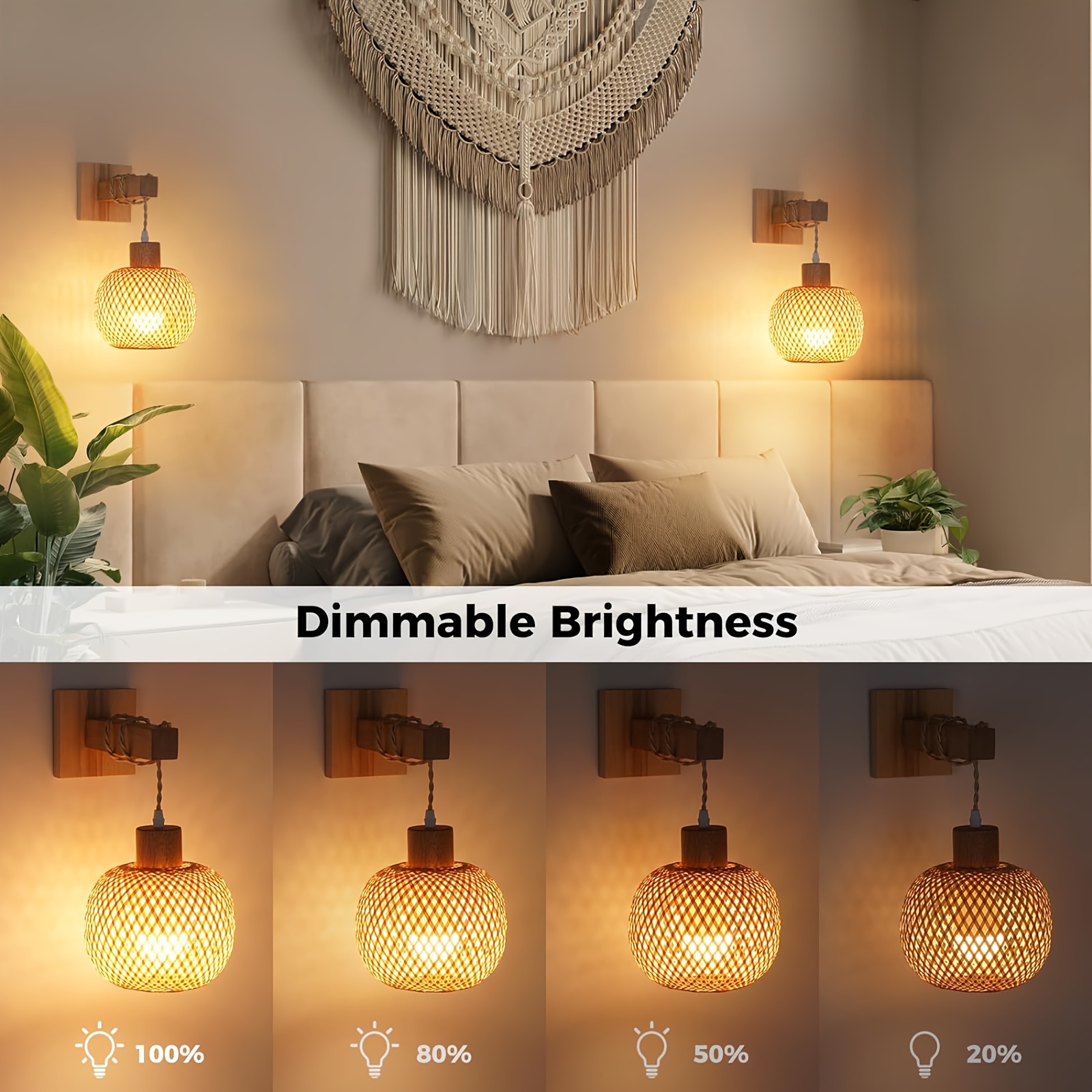 Il vous suffit de contrôler à distance l'ampoule à pile pour éclairer la nuit. Applique murale Boho, blanc/rotin Si vous avez des questions sur nos produits, n'hésitez pas à nous contacter. Tête De Lit En Rotin SJMFGF Lot De 2 Appliques Murales à Distance à Piles Style Bohème En Rotin Rechargeable à Piles Pour Chambre à Coucher, Couloir, Entrée Applique Murale Rotin 1 x télécommande2 chargeurs USBCONSEILS CHAUDS :Si vous souhaitez choisir plus de lampes, veuillez rechercher « SWEMOPP » pour entrer dans ma boutique. ▶Nous livrerons le tout vendu à temps. Piles incluses : NonPiles requises : OuiEmballage inclus:2 x applique murale2 ampoules LED. Télécommande : pile bouton CR2025 (non incluse). Plage de contrôle maximale de 15 pieds, vous pouvez 4 fonctions: marche/arrêt, luminosité (0%-100%), 3 températures de couleur (lumière chaude 3000K/lumière blanche chaude 4000K/lumière blanche 6000K), réglage de la synchronisation (anto-off en 15, 30,60,120 minutes). Rechargeable, comprend un câble de chargement USB (Type-C) et 2 rondelles lumineuses. Nous vous répondrons par e-mail dans les 24 heures. 【SERVICE EXCEPTIONNEL】 Nous pensons que vous allez adorer ces belles appliques murales modernes pour décorer votre décoration intérieure. Applique murale à batterie avec durée de vie maximale de 14 heures : dure jusqu'à 14 heures, les appliques sans fil n'ont pas besoin de remplacer ou de charger les piles fréquemment (en fonction de la luminosité). 【Décoration murale d'appliques】 Ensemble d'appliques murales en rotin bohème fonctionnant à piles, idéales pour la décoration intérieure de la maison, salle à manger, salon, couloir, couloirs, café, sous-sol, salle à manger, bureau, bibliothèque. Matériau : applique murale en rotin de bambou de haute qualité, tissée à la main, style vintage rustique, pas facile à déformer, durable et solide. Diy rustique... Pendant ce temps, les appliques murales sans fil n’ont pas de prix en cas de panne de courant. Une télécommande peut contrôler plusieurs appliques murales à piles en même temps. Alimenté par des piles AAA, consomme 90 % d'énergie en moins par rapport aux ampoules à incandescence et la luminosité n'est pas aussi brillante que celle de l'ampoule. Une applique murale est un excellent moyen d'ajouter plus de lumière à une pièce.