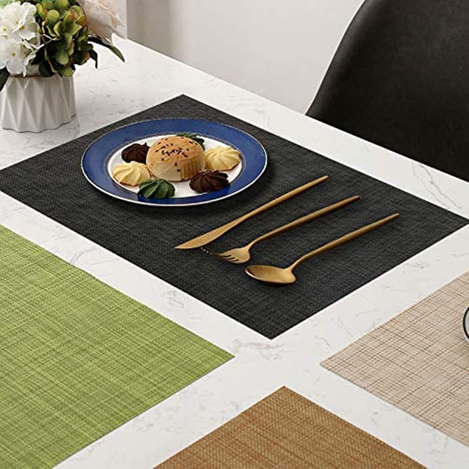 Spécification Matière: Lin Taille: 45x32cm Couleur: noir L'ensemble Contient 4 x Sets de table [Idéal pour un usage quotidien]: Ces sets de table robustes offrent une protection efficace à vos tables contre les rayures, les éclaboussures et les taches. Leur épaisseur parfaite garantit une longue durée de vie tout en conservant l'élégance de votre table, que ce soit pour les repas en famille ou lors de réceptions. Sets de table Design et original En cas de taches, S'il y a une tache sur le set de table, il peut être facilement lavé avec un peu de savon. Set De Table Bleu Aoksunova Set De Table En Tissu Noir Sets De Table En Lin Lot De 4 48 X Set De Table Plastique [Contenu de l'emballage]: Ce lot contient 4 sets de table élégants, chacun mesurant 45 x 32 cm. Leur composition naturelle en fait un choix durable et sans danger pour votre maison, tout en ajoutant une touche de confort et de charme rustique. Parfaitement adaptés pour une table de 4 personnes, ils s'intègrent harmonieusement dans votre décoration intérieure tout en offrant une protection fiable pour vos surfaces. EN STOCK : Lot de 4 Sets de Table, Sets de Table Lavable imperméables 42 × 30cm Cuisine Salle à Restaurant PVC Set de Table Antidérapant Chaleur Résiste...