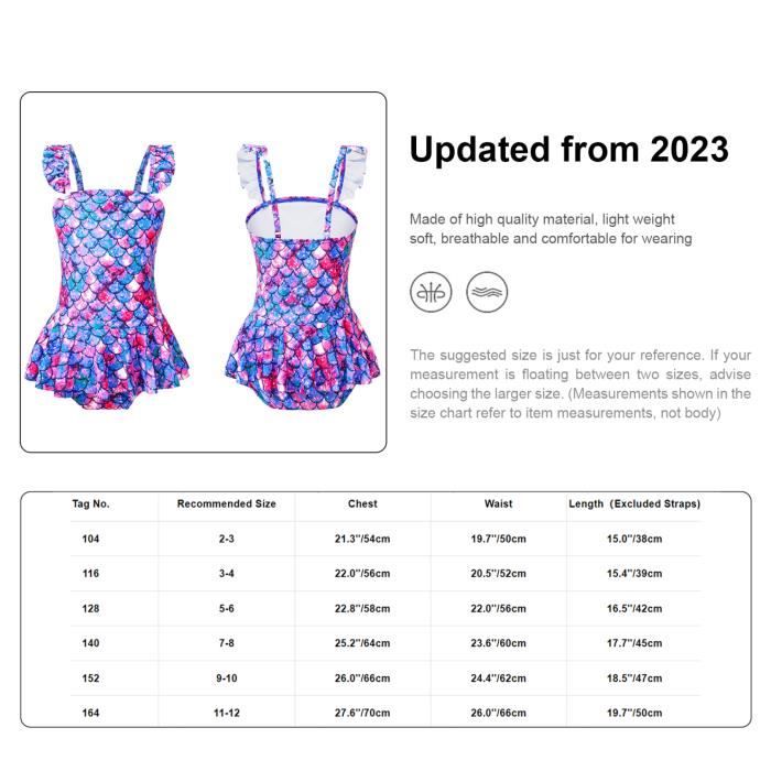 ❤ Style : Décontracté, belle, mignon, jolie, chic, mode., ❤ Taille : 7-15 ans. ✿ Occasion : Fête, plage, piscine, vacances, mer, baignade, mer, natation, surf, quotidien, baignade, parc aquatique, pataugeoire, etc. ❤ Occasion : L'ensemble de maillot de bain pour filles convient à la fête, à la plage, à la piscine, aux vacances, à la mer, à la baignade, à la mer, à la natation, au surf, au quotidien, à la baignade, au parc aquatique, à la pataugeoire, etc. Support client • Mon maillot de bain ❤ Conception : Princesse sirène. ❤ Conception : Maillot de bain 8 pièces pour filles, maillot de bain princesse sirène, haut court sans manches à bretelles avec triangle short de bain bandage , rendent les enfants encore plus mignons et beaux. Offrez à votre fille un look tendance et original avec le Maillot 2 Pièces Fille Mono Bretelle Hawaï. Les maillots de bain chics et à la mode sont le meilleur cadeau pour les filles, les fillettes et les enfants. ❤ Taille : Les maillots de bain conviennent aux petites filles de 7 à 21 ans. ❤ Matériel : Les ensembles de maillots de bain d'été pour filles sont en polyester, doux pour la peau et respirant, léger et confortable à porter. Maillot De Bain Fille 14 Ans Bikini 2 Pièces Pour Fille 6-14 Ans - Volants & Bretelles Croisées - Style Mignon Et Fun Maillot De Bain Fille 6 Ans Queue De Sirene Avec Monopalme Maillot De Bain Sirène Pour Enfants Show Maillot De Bain Princesse Jupe Maillot De Bain Fille Sirene Maillot de bain,Costume de sirène de natation pour enfants,queue de... Remarque ➻ Les mesures étant prises à la main, veuillez permettre une erreur de mesure de 1 à 3 cm.