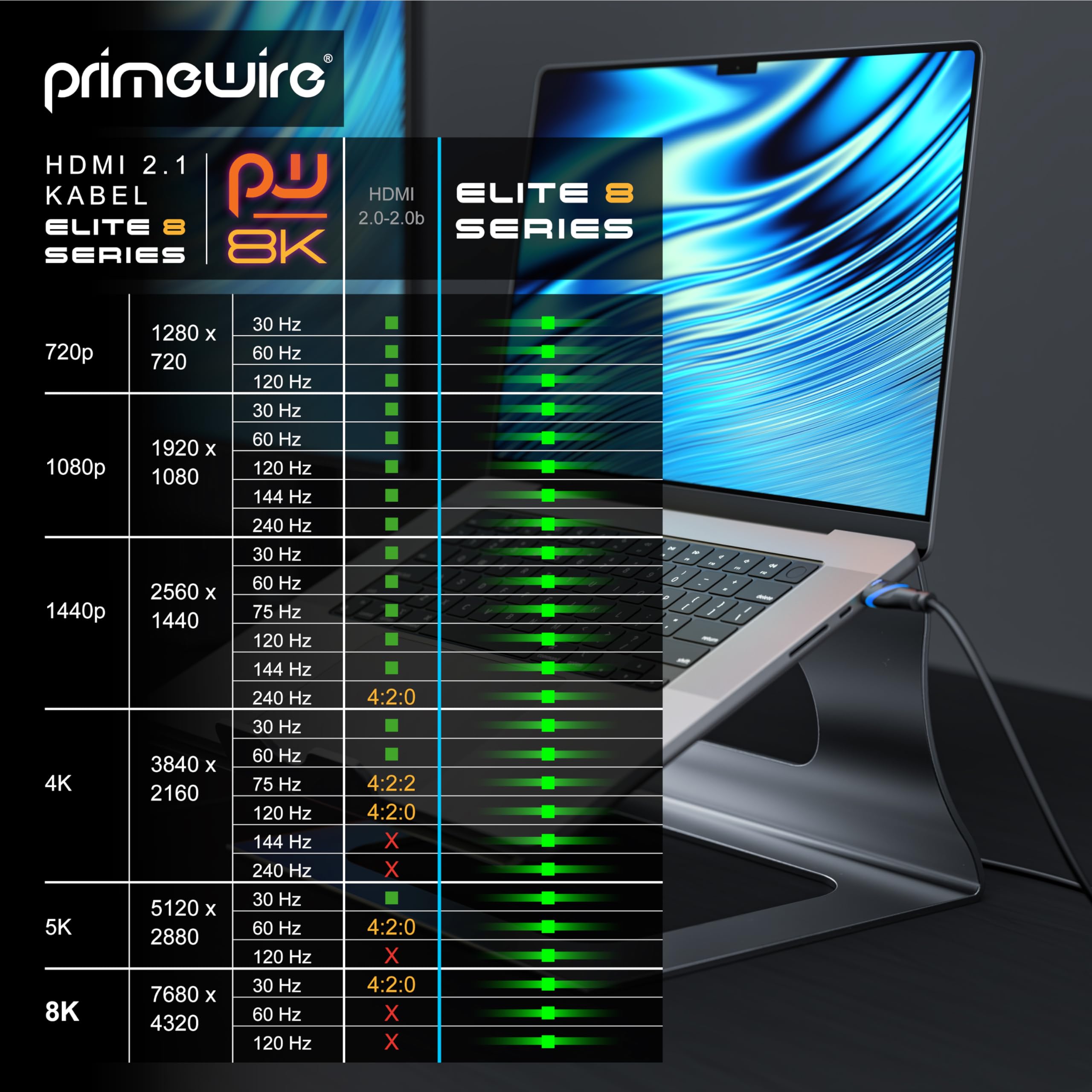 Résolutions entre autres : 5120 x 2880 à 60 Hz (sans DSC) et 5120 x 2880 à 120 Hz (avec DSC) - 3840 x 2160 à 144 Hz (sans DSC) - 120 Hz avec DSC - 2560 x 1440 Hz à 120 Hz - 1920 x 1200 à 120Hz. Hdmi 3m CSL Câble HDMI 8K 4K 2.1 2.0 1M, 8K@60Hz 4K@120Hz Avec DSC, 48 Gbit/s, 3D, Ethernet Ultra Haute Vitesse, TV Blu-ray PS5 Xbox Series X Switch Noir Cable Hdmi 3m Diamètre du câble : 6 mm - Profondeur de couleur : 4K @ 8 bpc (embouts par couleur) | 4K @ 12 bpc Transfert de données sans DSC (Display Stream Compression) 8 K : 7680 x 4320 @ 30 Hz., 5 K : 5120 × 2880 @ 60 Hz., 4K : 3840 x 2160 @ 144 Hz., 2K : 2560 x 1440 @ 240 Hz., 1K : 1920 x 1200 à 240 Hz. Le câble HDMI 8 K Primewire durable est conforme aux spécifications HDMI modernes. CSL Câble HDMI 8K 4K 2.1 2.0 10M, 8K@60Hz 4K@120Hz avec DSC, 48 Pensé pour le jeu 8K. Prend en charge des espaces de couleurs étendus comme x., v. Achetez CSL - Câble HDMI 8k 2.1 1 m - 8K @ 60Hz / 120Hz - 4K @ 240Hz - 48 Gbit/s - HDMI 2.1 2.0a 2.0b - 3D - Ethernet haut débit - HDTV - UHD II - Dynamic... La bande passante est jusqu'à 48 Gbps. Il transmet des images et des sons d'excellente qualité. Pour la 4K, il offre une résolution maximale avec des vitesses de répétition rapides (en fonction de la carte graphique et du moniteur) : 3840 x 2160 @ 120 Hz Prise en charge de 16 bpc ou 48 bits par pixel - Parfait pour tous les appareils HDMI tels que les téléviseurs 4K et 8K, PlayStation 5, 4 Pro, XboX One X, XBox Series S X 4K, lecteur Blu-ray compatible ARC (canal de retour audio/canal de retour audio) - Connecteur de précision en aluminium - Blindage en feuille de cuivre : Les fiches sont blindées par un revêtement en cuivre supplémentaire contre les signaux parasites - Triple blindage du câble (1 x treillis métallique, 1 x film métallisé sur toutes les paires de fils, 1 x par paire) - Rétrocompatible avec : 2., 0 a/b, 1., 0, 1., 1, 1., 2a, 1., 2, 1., 3, 1., 3a/b/c, 1., 4 / 1., 4b); HDR, ARC, 3D, 10bit espace de couleur, YcbCr 4:4:4:4, Ethernet transmet tous les formats audio numériques tels que 2., 0, 2., 1, 5., 1, 7., 1, DTS-HD Master Audio, Dolby TrueHD, Dolby Digital, DTS, SACD. Connexion de composants AV compatibles Internet avec l'ARC (canal de retour audio / canal de retour audio). Parfait pour tous les appareils HDMI tels que les téléviseurs 4K et 8K, PlayStation 4 Pro, Playstation PS5, XboX One X, XBox Series X, XBox Series S, 4k Blu-ray Color + Deep Color jusqu'à 48 bits de profondeur. Peut être utilisé avec les versions précédentes HDMI.