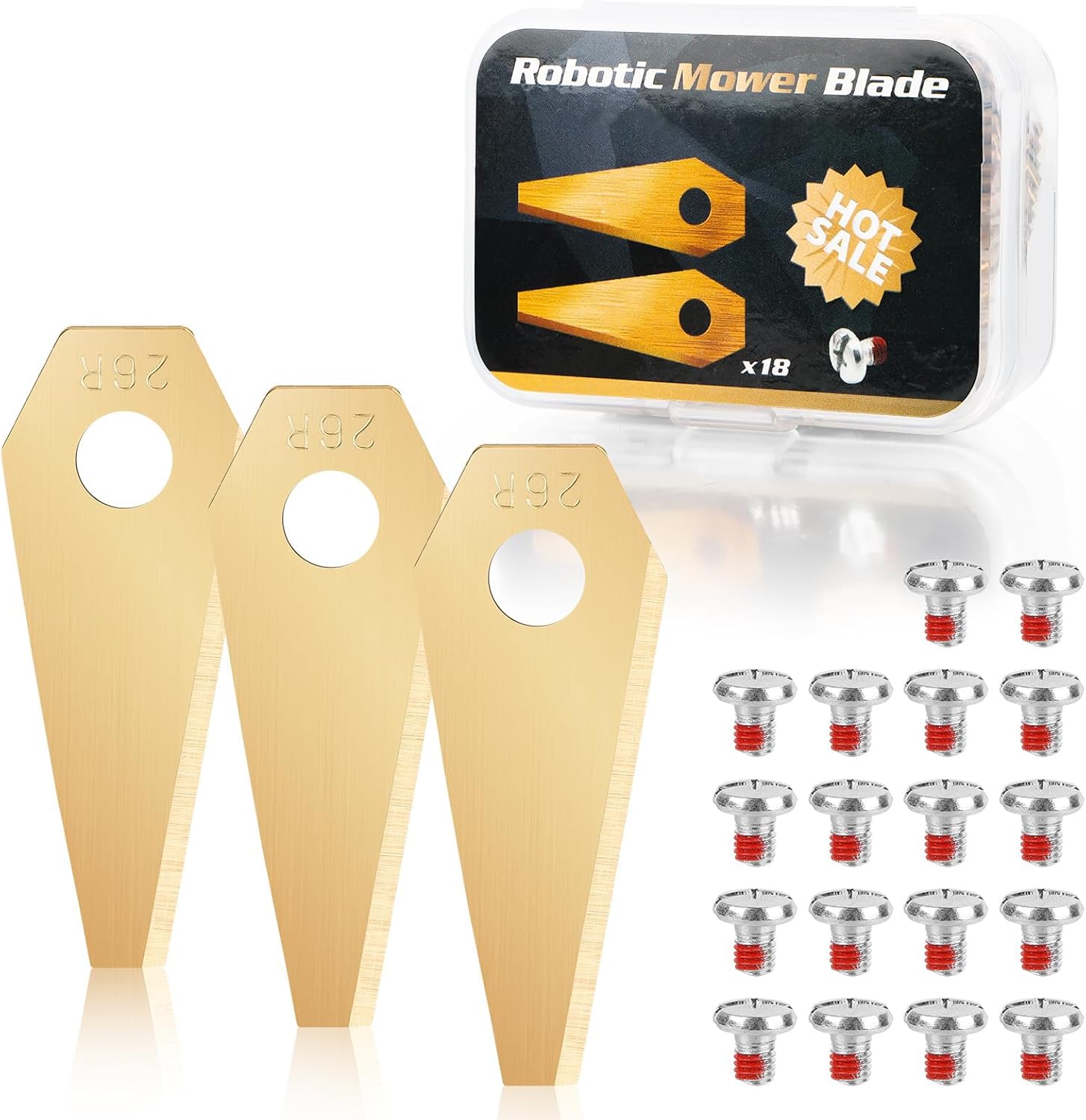 Fonctionnalités : 1., Lame de rechange extra tranchante pour robot tondeuse. Lames pour robot tondeuse Bosch Indego Facile à remplacer : les lames du robot tondeuse sont faciles à installer et à enlever, les tenons des vis simplifient l'installation, réduisent les dommages au... Les lames sont parfaitement compatibles avec la tondeuse à gazon et n'endommagent pas la pelouse, créant ainsi une pelouse saine et attrayante. (2) En raison de la différence de mesure manuelle, la taille peut être légèrement différente, merci de votre compréhension. C'est pourquoi nous vous recommandons d'utiliser des gants lors du montage des lames interchangeables., 2., Lame de rechange pour robot tondeuse à gazon. Dimensions : environ 65 x 45 x 20 mm. Facile à ranger et à utiliser. Nous vous recommandons de changer la lame de votre robot dès que la surface ou l'image de coupe de la surface de la pelouse tondue semble inégale ou peu propre., 3., Lames de tondeuse robot en cas de changement, les vis doivent également être remplacées en conséquence. Facile à remplacer : les lames du robot tondeuse sont faciles à installer et à enlever, les tenons des vis simplifient l'installation, réduisent les dommages au filetage et empêchent le desserrage même dans des conditions météorologiques défavorables. Compatibles avec les modèles Indego 350, 400, 450, 800, 1000, 1200, Connect et autres. Chaque lame mesure environ 65 x 45 x 20 mm. Le lot inclut également 18 vis de rechange (à changer à chaque remplacement de lame pour un serrage optimal Robot Cuisine Bosch Lame Mova 1000 Kanoo® Lot De 18 Lames De Rechange En Titane - Premium Lames Pour Robot Indego - Lame De Rechange De Qualité Supérieure Pour Tondeuse à Gazon Avec Tondeuse Bosch Large compatibilité : les lames de rechange pour robot tondeuse sont parfaitement compatibles avec tous les modèles des principales marques de tondeuse à gazon Bosch Indego.