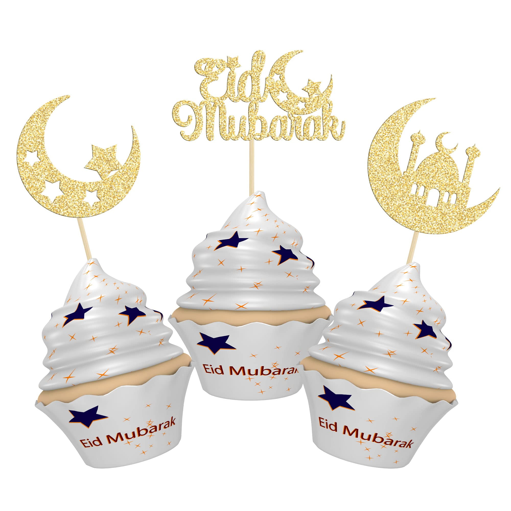 Design : classique et pratique. Le paquet comprend : 32 décorations de cupcake sur le thème de l'Aïd Mubarak (16 or 16 argent). Parfait pour la décoration de gâteau de l'Aïd Mubarak. Conçu spécialement pour la fête musulmane, le design scintillant est élégant et beau et les matériaux utilisés sont sûrs. Umrah Mubarak Lot de 13 décorations de cupcake noires et... Accessoire de fête idéal pour le Ramadan Kareem, l'Aïd Mubarak. Taille parfaite pour les décorations de cupcakes, décorations de gâteau, décoration de dessert. Gateau Minecraft Eid Mubarak Cookie Cutter, Decoration Ramadan Musulman Fondant Gâteau Emporte Piece Aid Cake topper Eid Mubarak - coloris au choix Décoration de cupcake Ramadan Kareem Inscription « Eid Mubarak »., Quantité : 32 pièces., Dimensions : 4 x 8 cm. Matériau : acrylique, avec film., Couleur : 16 × or, 16 × argent., Dimensions : 4 x 8 cm.