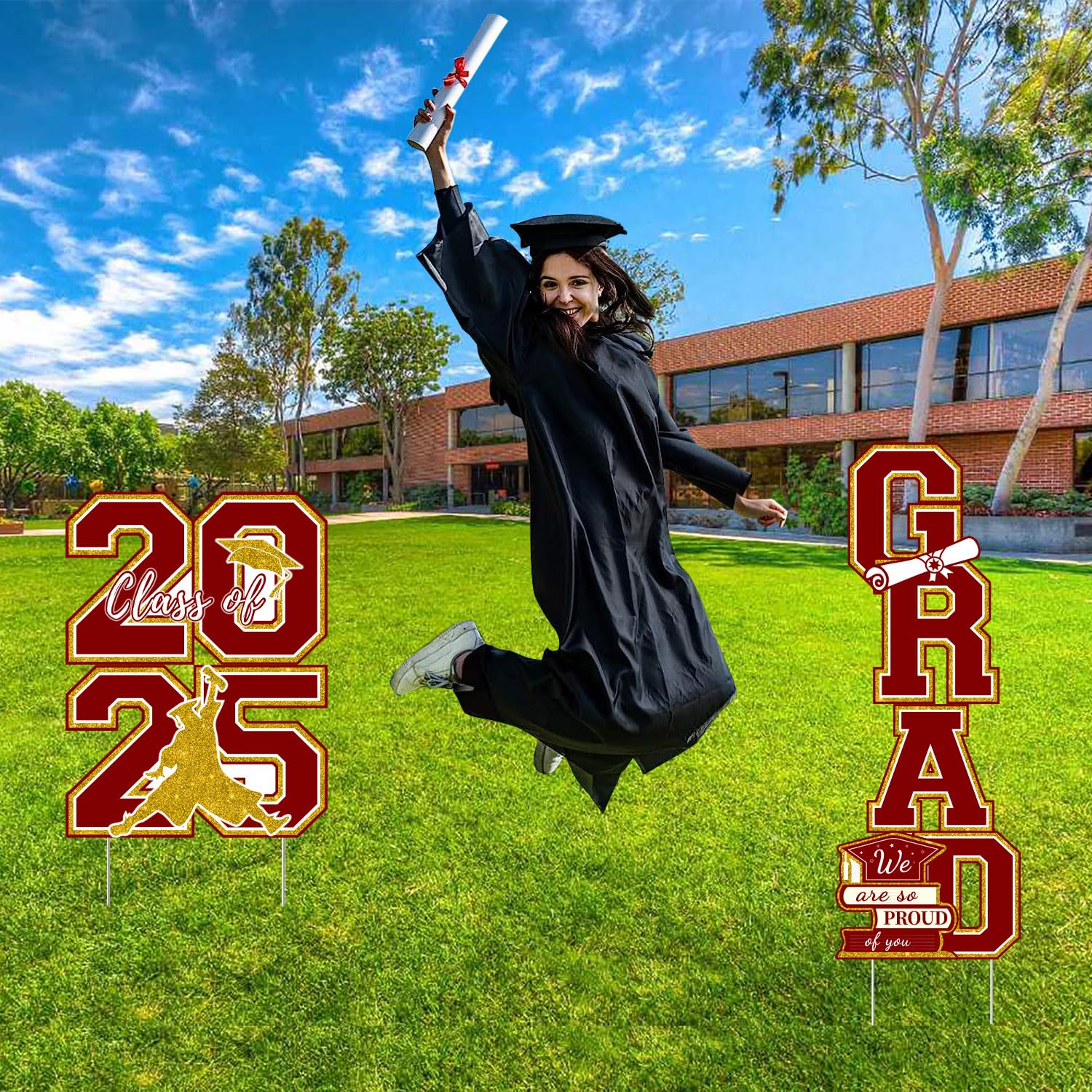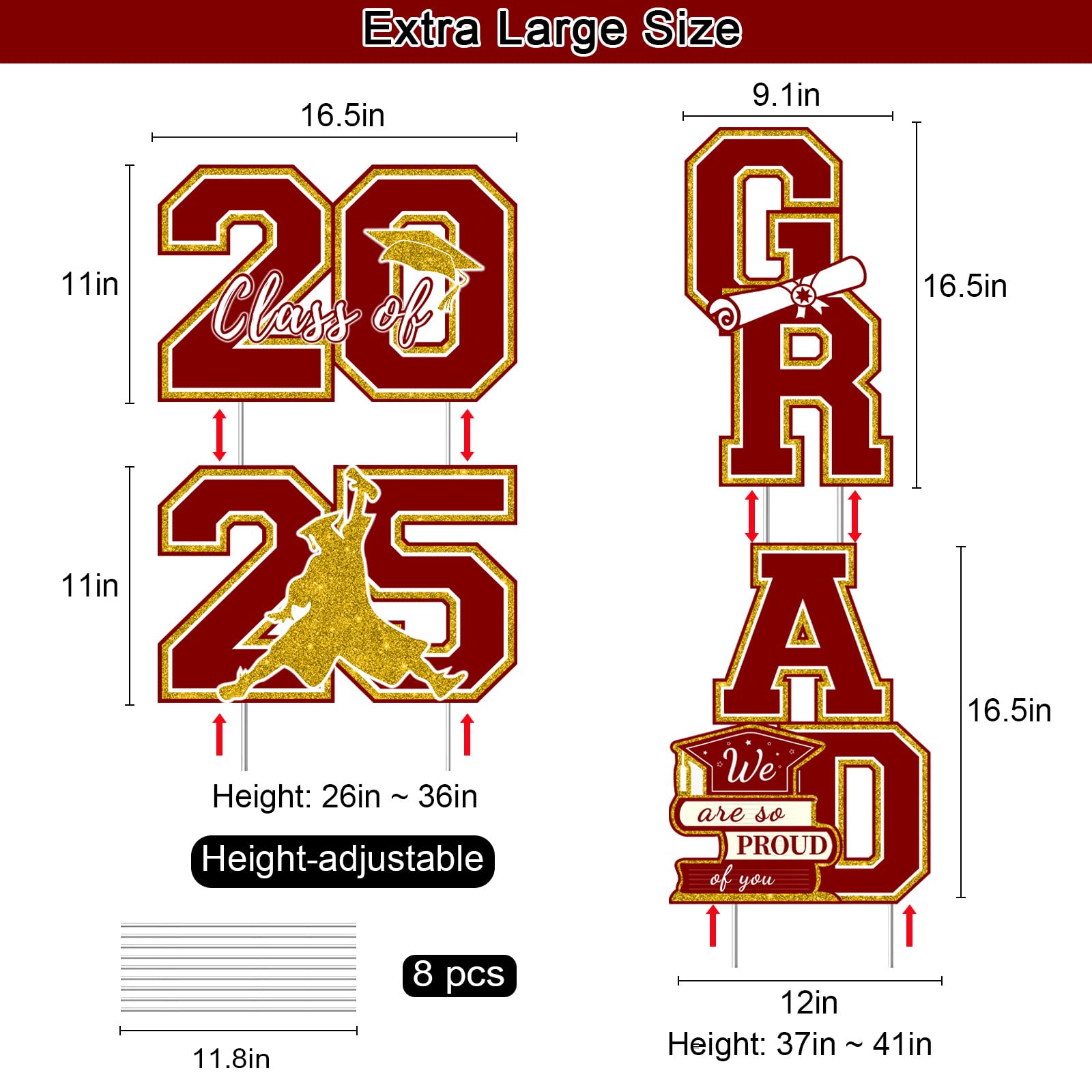 Ensemble de panneaux de cour de remise de diplôme : vous recevrez 4 panneaux de cour avec 8 piquets. Panneau De Cour De Remise De Diplôme 2024 Avec Piquets Pour Décoration De Fête De Remise De Diplôme 2024 Sa personnalisation, son thème de remise de diplôme et sa polyvalence en font un cadeau précieux. Nos éléments de conception de panneau de cour de remise de diplôme comprennent des casquettes de remise de diplôme, des diplômes, des livres et d'autres éléments signature pour la remise Ces panneaux de cour de remise de diplôme sont assez grands pour renforcer l'atmosphère de la saison de remise des diplômes. Excellente résistance à l'eau : nos panneaux de cour sont fabriqués en carton creux ondulé épais, qui résiste bien à l'eau. Taille XL : la taille de nos panneaux de cour de remise de diplôme est d'environ 42 x 28 cm, 40 x 23 cm, 40 x 30 cm, en plus de la taille des piquets de 30 cm. Idéal pour les décorations extérieures de remise de diplôme 2024 Les motifs sur ces panneaux sont imprimés par une technologie professionnelle, imperméables, résistants aux intempéries, ne se décolorent pas et ne s'abîment pas facilement, ils peuvent être utilisés à l'extérieur les jours de pluie pendant une longue période. Nombreuses utilisations : nos panneaux de cour « 2024 Grade » sont parfaits pour la cour avant de la maison, les utiliser comme décoration de pelouse ou décoration extérieure pour les fêtes de remise de diplôme peut non seulement renforcer l'atmosphère de la saison de remise de diplôme, mais également transmettre la joie et les bénédictions de la remise de diplôme. Découpe de panneau de remise de diplôme 2024, Félicitations Graduation 2024 Découpes de pelouse Félicitations Grad 2024 Décorations de panneau de cour avec piquets métalliques. Économiques et durables, nos panneaux de jardin en coroplast sont un incontournable de la publicité extérieure. Ces panneaux de décoration de fête de remise de diplôme 2024, classe de 2024, décoration de... Centre de table pour fête de remise de diplômes - Ce panneau décoratif peut servir de décoration pour les fêtes de remise de diplômes ou autres rassemblements. Lot de 4 panneaux de décoration de cour pour remise de