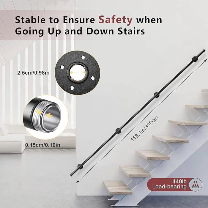 La rampe d'escalier est en bois et en fer forgé et a une structure en acier lourde, elle est très stable, même si le poids dépasse 200 kg. Support sécurisé 200kg. Hauteur du support : 85 cm. Escabeau - AUTREMENT - 5 Marches - Plateau à Outils - Mains Courantes... ains courantes en PVC iperéables pour arches extérieures, ain... Main Courante Bois Pour Escalier Main Courante Pour Escalier 3M Rampe D'escalier Intérieur Extérieur Rampe Escalier Bois Conception à angle réglable, pour s'adapter aux marches avec différentes différences de hauteur, et peut également être utilisée sur un sol plat. Rampe d'escalier de sécurité pour marches extérieures, Mains courantes 【Applicable à plusieurs scénarios】Les mains courantes peuvent être installées sur les marches et les escaliers pour le jardin, le balcon, le porche, le garage, les entrées résidentielles, etc. 【Main courante en bois × 1】100% bois massif, design ergonomique, surface lisse, prise en main confortable, forte capacité de charge. Il est idéal pour les endroits où vous ne pouvez pas vous fixer à un mur ou à un bâtiment.