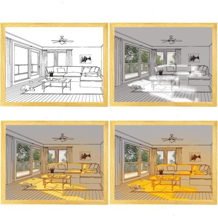 Luminosité réglable : interrupteur à bouton USB, prend en charge 3 modes d'éclairage (lumière blanche, lumière chaude, lumière neutre), vous pouvez facilement régler la luminosité de la lumière de l'image pour créer différentes scènes de lumière et d'ombre. 【Décoration polyvalente】La peinture éclairée n'est pas seulement une superbe œuvre d'art, mais aussi un cadeau attentionné qui laisse une impression durable. Éclairage LED abstrait moderne 1250mm, peinture murale décorative pour salon|Homary Peinture Murale À Led - Décoration - Veilleuse - Cadre Photo - Avec 3 Couleurs - Éclairage... Peut être placé sur n'importe quel bureau ou table avec le support de support, ou peut également être accroché au mur. éclairage Pour Oeuvre D'art Décoration De Peinture D'éclairage, Cadre Photo Lumineux à Eclairage Tableau Led Pile Choisissez entre le matin, l'après-midi ou le soleil au coucher du soleil pour créer l'ambiance parfaite 【Installation facile】 La décoration LED est conçue pour une installation facile. Matériaux de haute qualité : fabriqué avec des matériaux de haute qualité, le cadre photo décoratif dispose d'un cadre en bois massif et d'une surface acrylique qui diffuse magnifiquement la lumière, un travail exquis avec des lumières et des couleurs soigneusement calculées, créant une expérience visuelle attrayante Kit De Peinture Diamant 5D Pour L'Éclairage Public En Soirée D'Hiver Point De Croix Cristal...