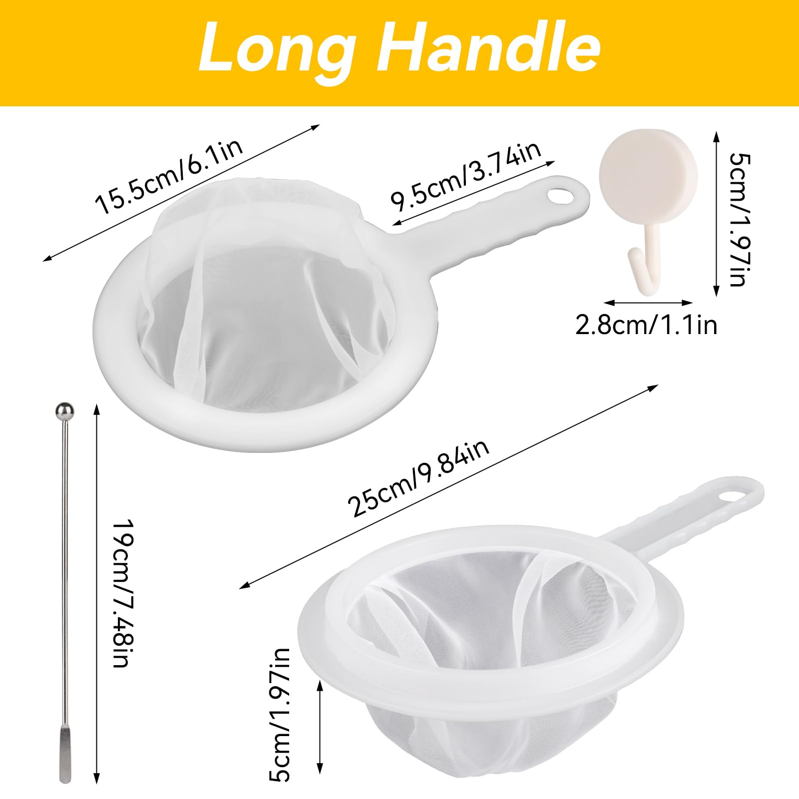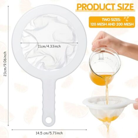 【Haute résistance aux températures et sécurité 】Notre tamis fin est en polypropylène et nylon de qualité alimentaire, qui peut entrer en contact direct avec les aliments, résiste aux hautes températures et peut filtrer les liquides à haute température tels que l'huile de friteuse. Description du produit : La passoire en maille fine haute densité sûre et respectueuse de l'environnement est utilisée pour filtrer et séparer le lait de soja, le jus, le café, etc. Séparateur de filtre alimentaire domestique haute densité 200 mailles, léger, antidérapant, durable 【Poignée anti-brûlure】La poignée anti-brûlure en bon matériau PP, isolation thermique efficace et empêche les brûlures causées par le café chaud, le thé chaud, etc. Petite Passoire Passoire Fine, Passoire à Cheveux, 200 Mailles En Plastique, Petite Filtre Cuisine Conçu avec des trous de suspension, la passoire peut être utilisée avec le crochet fourni pour un rangement facile dans la cuisine. Passoire En Plastique, Passoire À Main Pour Jus, Lait, Lait De ... Idéal pour les liquides chauds comme le café ou le lait ... petite passoire fine... Lot de 2 passoires en plastique à maille fine (maille 120/200, 24 x 14 Facile à nettoyer et à ranger : se nettoie très rapidement et facilement à la main ou au lave-vaisselle. Filtre ultra fin : tamis 200 mailles - Le maillage est si fin et uniforme, la filtration est très propre et il ne reste pas d'impuretés.
