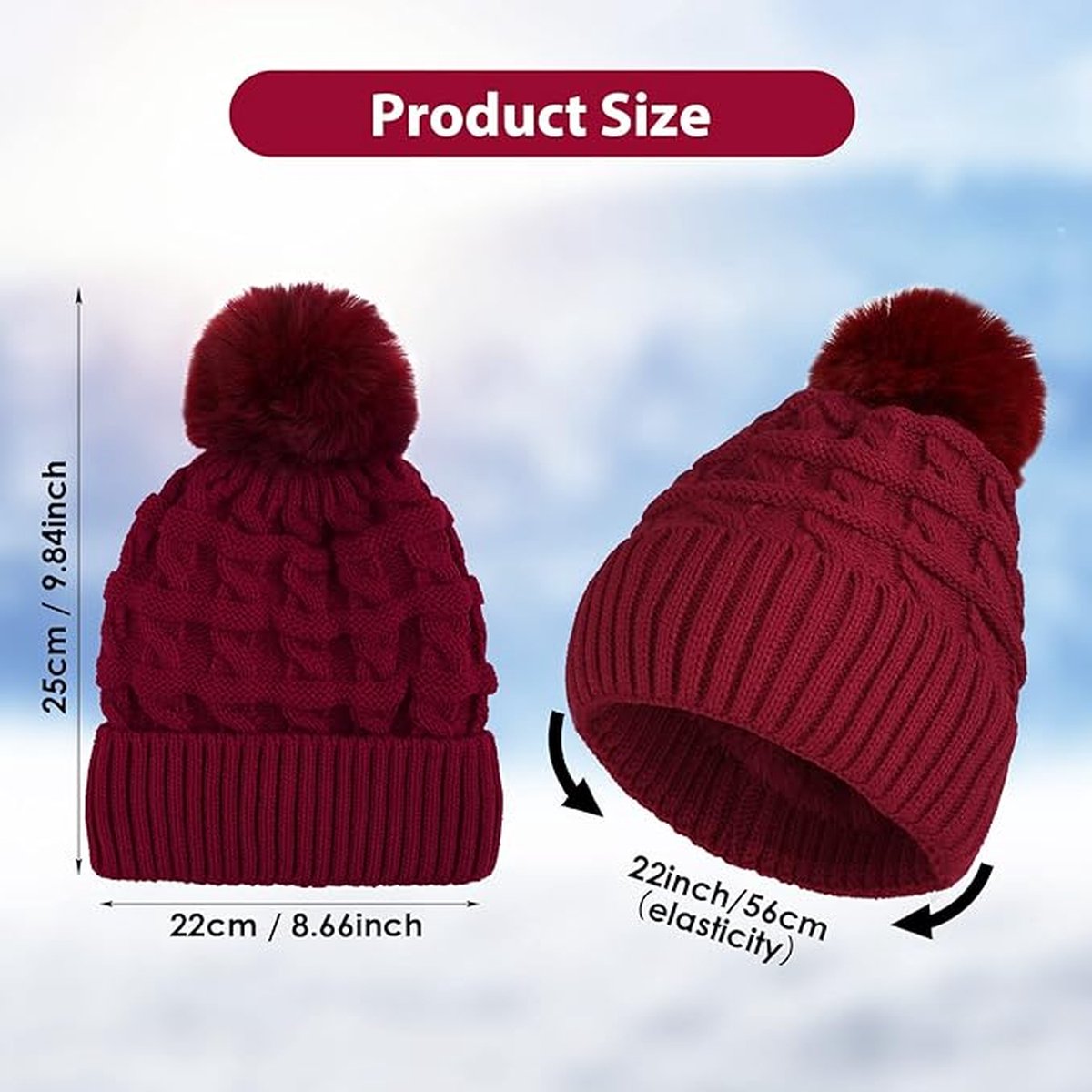Confortable et chaud : le chapeau feifanshop est doux, avec une forte élasticité, pas de sensation serrée, confortable que vous ne voudrez pas l'enlever. Idéal pour tout sport de plein air : adapté à une multitude d'utilisations en extérieur. Un bonnet respectueux de l'environnement de haute qualité avec grand pompon amovible en fausse fourrure Matériau et taille : le bonnet est flexible et s'adapte à un tour de tête de 50 à 58 cm. Fabriqué à partir de 100 % polyacrylique, convient aux personnes souffrant d'allergies Notre bonnet à pompons est très chaud et confortable. Le tricot est épais et il y a une doublure en polaire à l'intérieur pour protéger vos oreilles du vent... Bonnets Femme Bonnet D'hiver Double Couche Avec Pompon En Fausse Fourrure Bonnet Homme Pompon Notre chapeau est épais et offre une excellente chaleur ; vous recevrez 1 chapeau avec 1 pompon Élastique et confortable : le bonnet pour femme avec une seule taille est assez extensible pour s'adapter à la plupart des gens ; le bonnet peut couvrir vos oreilles et vous garder la tête au chaud ; porter notre bonnet, par temps froid en hiver ne bloquera jamais vos pas pour sortir 2 façons de le porter : le pompon amovible avec un bouton sur le dessus du bonnet est le choix parfait pour aller avec tout ce que vous portez ; notre boule bouffante est fabriquée en fausse fourrure de raton laveur et beaucoup plus grand que le pompon ordinaire, plus mignon et plus élégant ; lorsque vous recevez le bonnet, le pompon peut être plat en raison du colis, vous pouvez utiliser un sèche-cheveux pour le gonfler et faire ressortir sa beauté naturelle Matériau : acrylique, fausse fourrure., Instructions de lavage : 1., Lavez le bonnet à la main avec de l'eau chaude et ajoutez du shampooing ou un détergent neutre avant de le laisser tremper pendant 10 minutes., 2., Ne lavez pas le bonnet avec un détergent ordinaire ou du savon., 3., Ne lavez pas le pompon, car le lavage endommagera la forme du pompon., 4., Si vous le lavez en machine, il est recommandé de le mettre dans un sac à linge pour éviter les dommages. Bonnet Doublé Polaire Femme Bonnet Hiver Femme - Tricot Torsades Excellent bonnet/bonnet d'hiver pour tous les sports de plein air comme la course, le ski, le patinage et la randonnée. Enlevez ou mettez, super facile. Cadeau idéal pour Noël, Thanksgiving, Saint-Valentin pour votre amoureux comme surprise.
