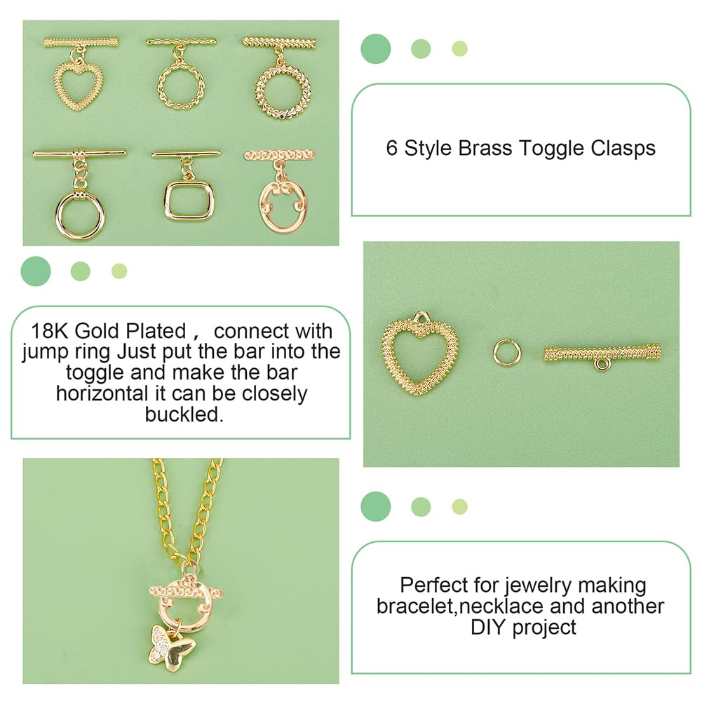 PH PandaHall 12pcs Fermoirs à Bascule Plaqués Or 18 Carats, 6 Styles