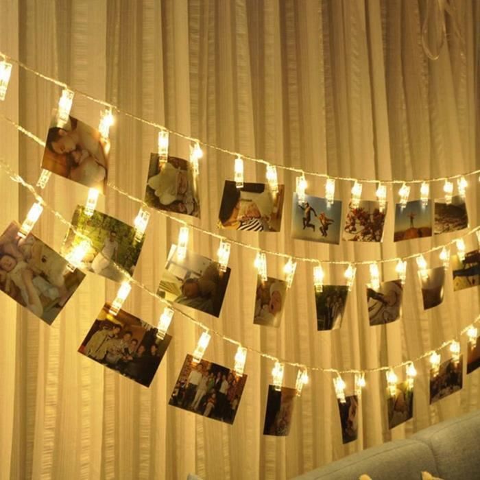Veuillez appuyer sur le bouton « 4 h ou 6 h ou 8 h ou 24 h » de la télécommande pour activer la minuterie Longueur d'éclairage : 6 m. Cadre Photo Led Solhice Guirlande Lumineuse à Clip Pour Photo De 6.1 M Avec 50 LED Fairy Lights Intervalles entre les clips : 12 cm. Plusieurs couleurs et modes d'éclairage : avec 16 couleurs stables et 2 couleurs mélangées. Remarque : lors de l'utilisation en extérieur, veuillez protéger la prise USB de l'eau. Nombre de clips : 50 clips transparents. SOLVINDEN Guirnalda de luces LED 24 bombillas, exterior energía solar Alimentation USB : vous pouvez utiliser une banque d'alimentation mobile ou d'autres appareils USB pour alimenter les lumières LED et les utiliser presque partout où vous le souhaitez. Le bouton interrupteur sur le port USB ou la télécommande aide à changer les couleurs et les modes, très facile à utiliser. Fonction minuterie : la guirlande lumineuse dispose d'un mode minuterie pour un marche/arrêt automatique. litogo Guirlande Photo, Guirlande Luineuse Chabre 5 50 LED Guirlande Luineuse Photo Avec 30... Guirlande lumineuse LED couleur (guirlande) Changement de couleur RGBW - ampoule 15x + câble 14m + protection IP65 + télécommande. Design unique : il y a 40 clips sur le fil de cuivre de 6 m, l'espacement entre les clips est de 15 cm, longueur du câble de 3 m. Et 7 modes principaux (fondu, saut, fondu, asyn, saut, jumelage, stroboscope, vagues) peuvent créer des atmosphères dynamiques et vibrantes en utilisant la télécommande.