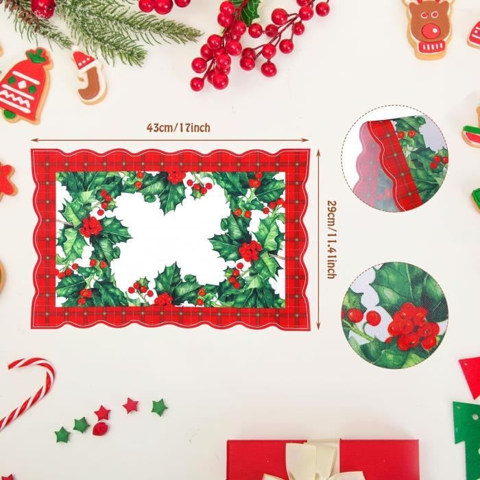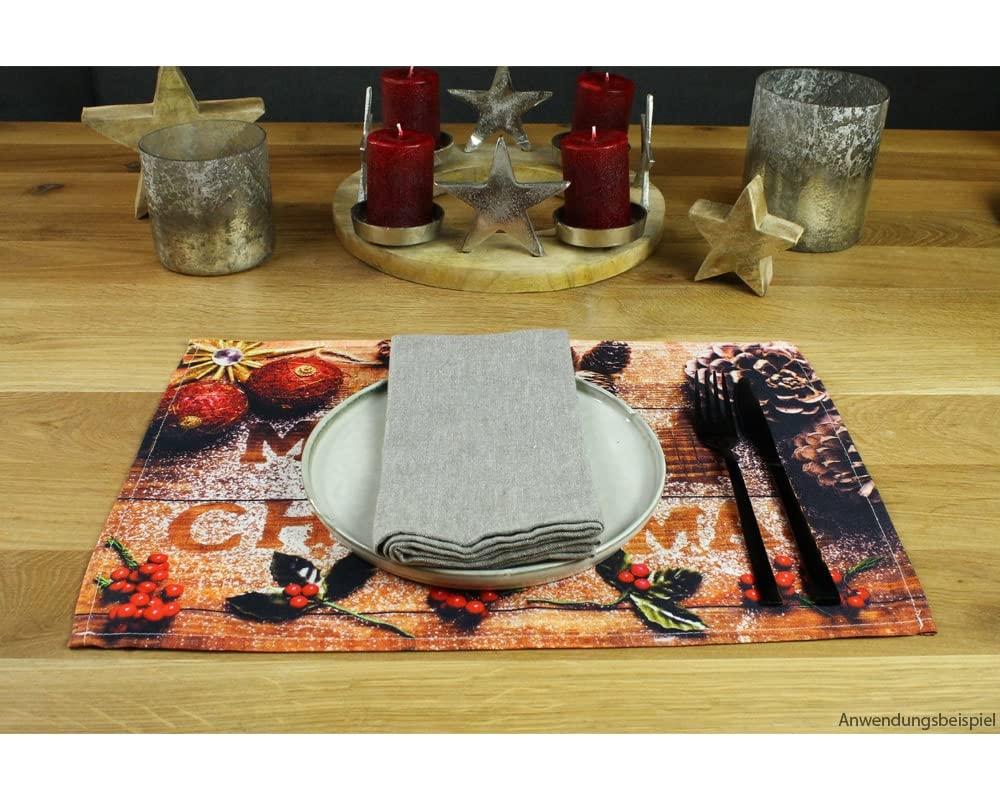 Matches21 - Jolis sets de table lavables - Motif de Noël - En bois rouge et marron - 43,5 x 28,5 cm. Superbe design : de beaux sets de table en plastique avec une superbe décoration de Noël, inscription « Merry Christma » imprimée sur une planche en bois grainé Contenu de la livraison : 8 pièces – Longueur : 43,5 x 28,5 cm – Motif : décoration de Noël & inscription & bois – Couleur : marron/rouge Chemin de table - Vichy - 28 cm x 5 m | Le Géant de la Fête Contenu de la livraison : 8 pièces – (L x l) : 43,5 x 28,5 cm – Motif : biscuits de Noël – Couleur : marron Qualité supérieure : sets de table imprimés en plastique Matches21 Lot de 8 sets de table lavables Motif sapin de... Toile De Fond Noël Maison En Bois Rouge Neige M8-66 Qualité : sets de table de qualité supérieure en matériau extra résistant (500 m/0,5 mm)
