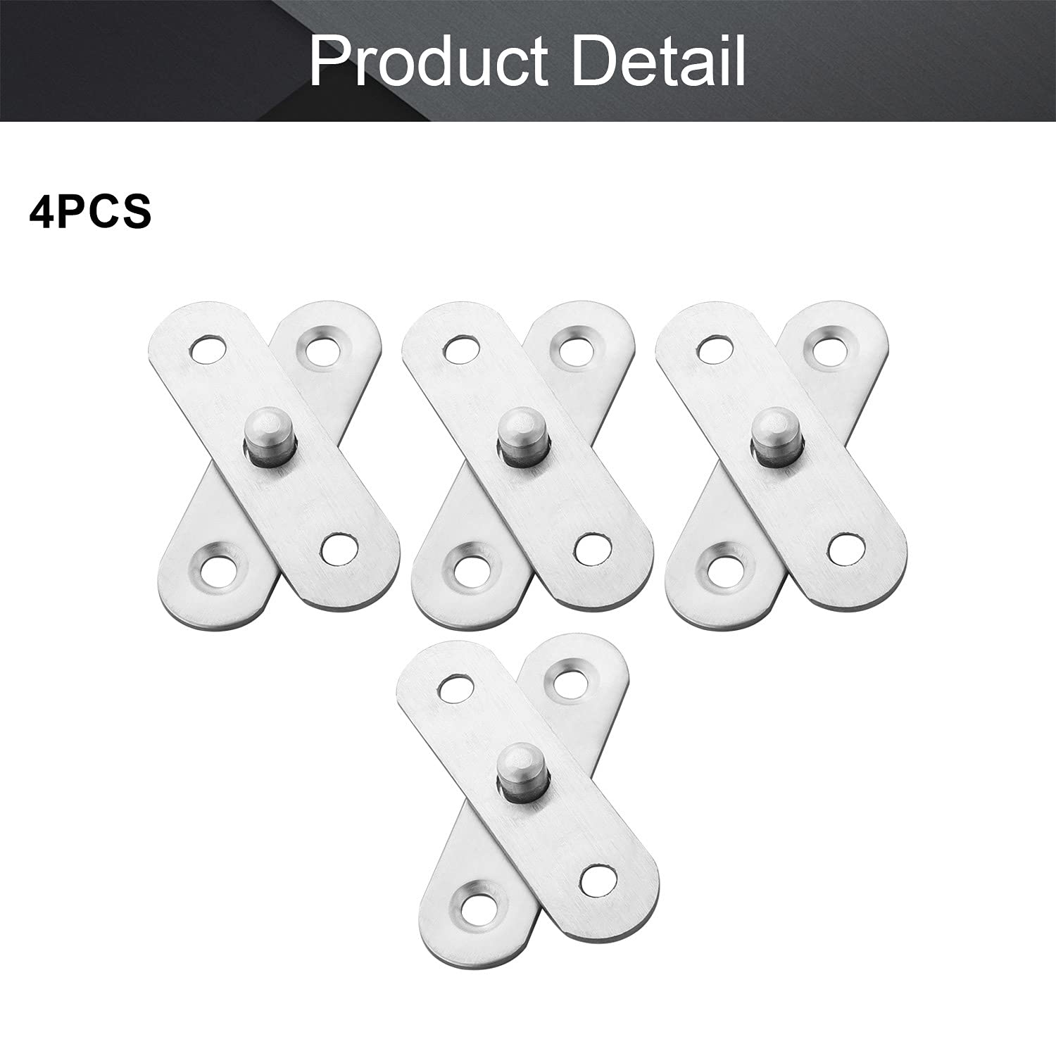 Charnière pivotante à 360 degrés en acier inoxydable, adaptée pour porte pivotante, bonne dissimulation, fixation et durable. Les charnières sont fabriquées en acier inoxydable de haute qualité assurant durabilité et fiabilité. Diamètre du trou de montage : 5 mm., Épaisseur : 2 mm. Fonctions de rotation, de liaison et de verrouillage à 360 degrés, faciles à installer. Fabriqué en acier inoxydable de haute qualité, il est robuste et durable, présente une bonne résistance à l'usure, à la corrosion, à la rouille, à la durabilité et peut être utilisé pendant une longue période Charnière pivotante de porte en acier inoxydable, rotation à 360 degrés... MroMax Charnière Pivotante De Porte En Acier Inoxydable Avec Rotation à 360 Degrés Argenté 95 Mm X 19 Mm, MRO190821H-0009, Argenté, 2PCS Caractéristiques : nom du produit : charnière de porte. 4 Pièces Roulettes Pivotantes En Acier Inoxydable Boîtes De Rangement À Dimensions totales : 57 x 16 mm (L x l). Contenu du colis : 4 ensembles de charnières de porte (les vis ne sont pas fournies). Installation : haut et bas ; robuste et durable.