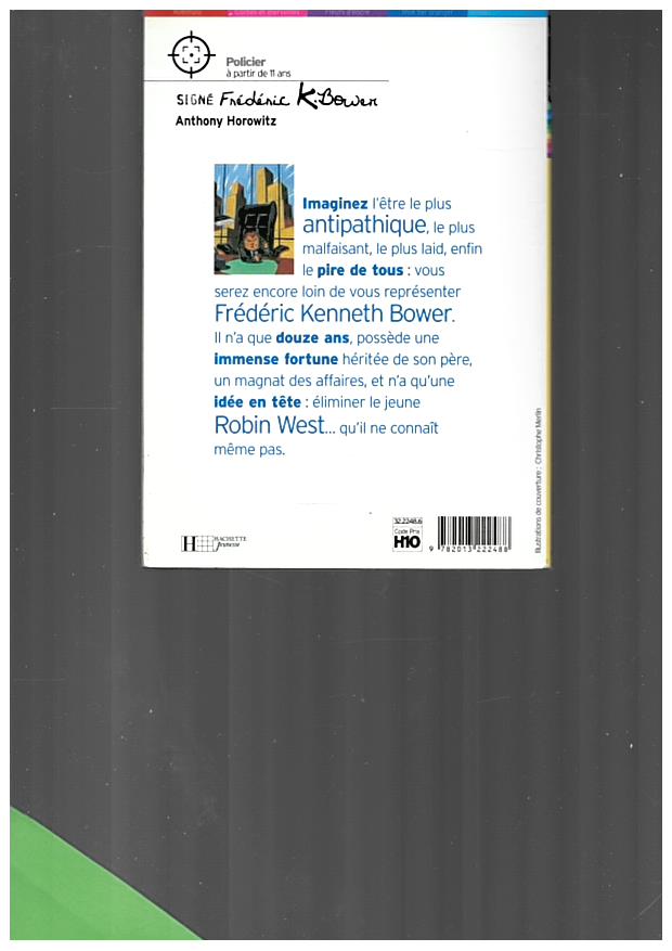 La Galette des Rois 2025 Louis Vuitton par Maxime Frédéric : une Imaginez l'être le plus antipathique, le plus malfaisant, le plus laid, enfin le pire de tous : vous serez encore loin de vous représenter Frédéric Kenneth Bower. Il n'a que douze ans, possède une immense fortune héritée de son père, un magnat des affaires, et n'a qu'une seule idée en tête : éliminer le jeune Robin West, qu'il ne connaît même pas. GenresChildrensFiction 192 pages... Signé Frédérik K. Bower | Bibliothèque Sonore Romande Daar ga je, frederick k. bower, Anthony Horowitz | 9789050162494... -Frédéric de Chergé.) -- 1857 -- livre
